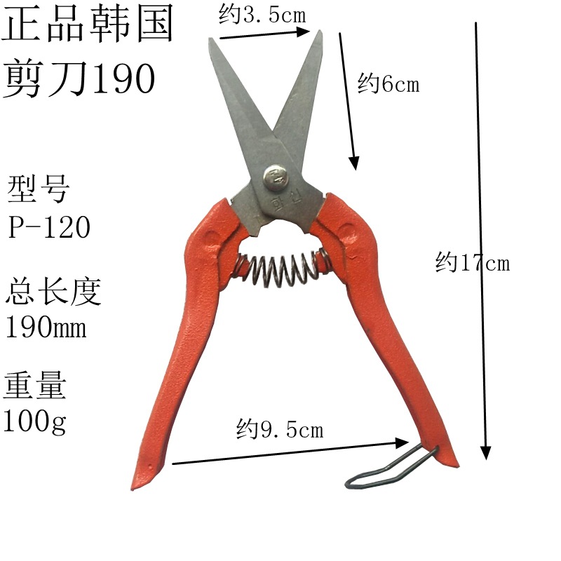 | 韩国剪刀长嘴 | P-120 | 190mm | 6cm | 剪饰品链条,厨房烤肉,园艺修枝 剪葡萄树枝 剪薄铁皮 |