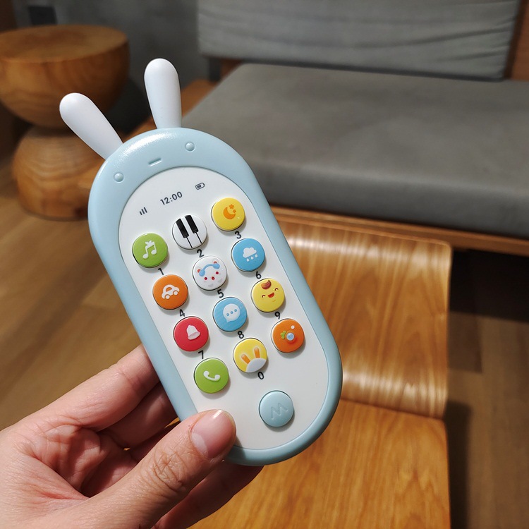 Beinshi 이중 언어 퍼즐 어린이 소형 휴대 전화 조기 교육 학습 시뮬레이션 전화 실리콘 귀는 0-3 세에 물릴 수 있습니다스토어 가기