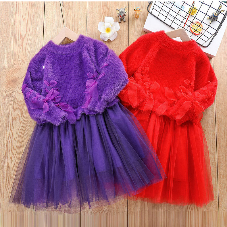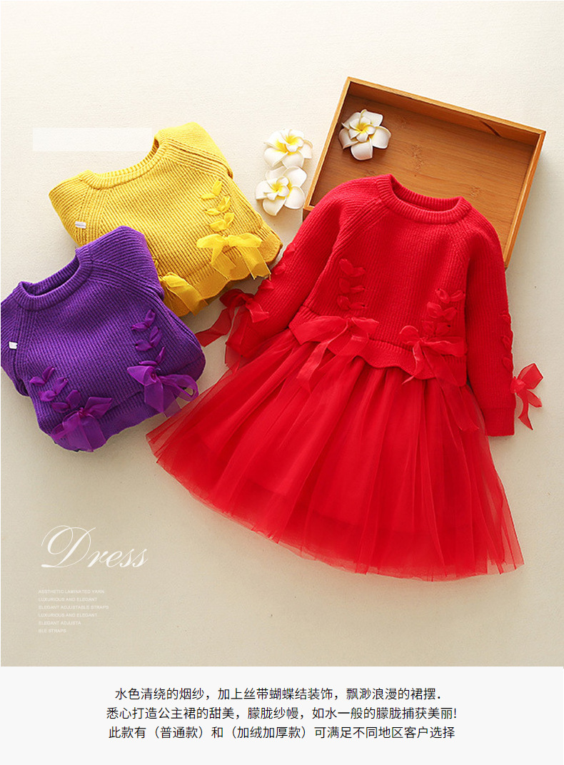 2024 가을 겨울 아동복 도매 여아 스웨터 드레스 리본 공주 드레스 아동 드레스 유아 드레스
