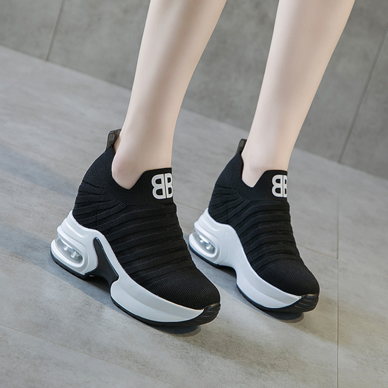 여성용 에어 쿠션 신발 봄, 가을 ins 유행 신발 2025 새로운 패션 통기성 메쉬 캐주얼 신발 내부 높이 증가 여성 신발 작은 사이즈스토어 가기