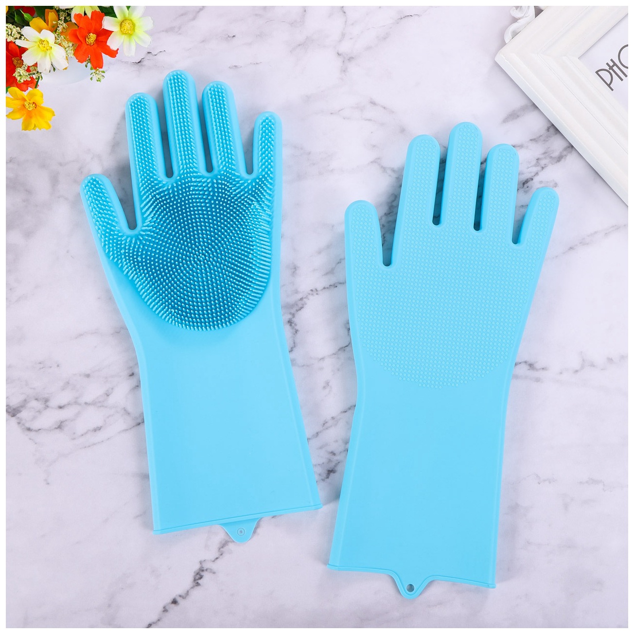 Yi Nian 긴 바늘 얇은 바늘 두꺼운 고온 단열 화상 방지 실리콘 장갑 주방 가사 청소 식기 세척 장갑