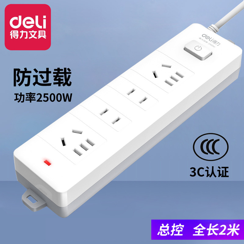 델리 18251 드래그 보드 배선 보드 4 위치 2 미터 소켓 가정용 전원 플러그 보드 멀티 홀 플러그 보드 소켓 행스토어 가기
