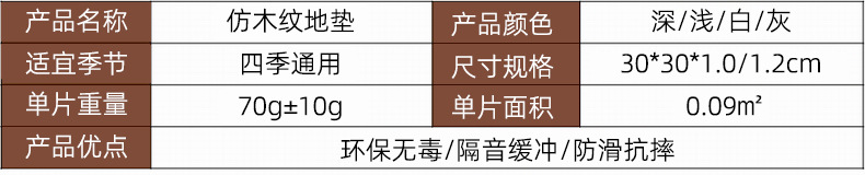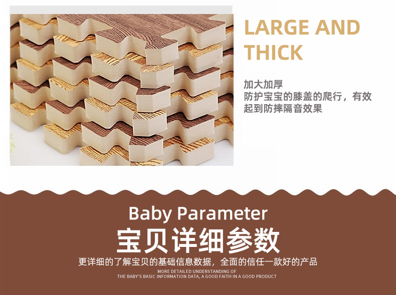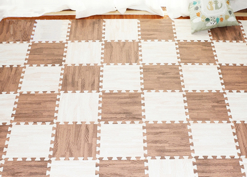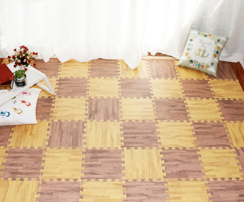 나뭇결 폼 바닥 매트, 클라이밍 매트, 조각 퍼즐 30*30 소형 두꺼운 침실 및 기숙사 크롤링 매트, 낙상 방지 매트스토어 가기