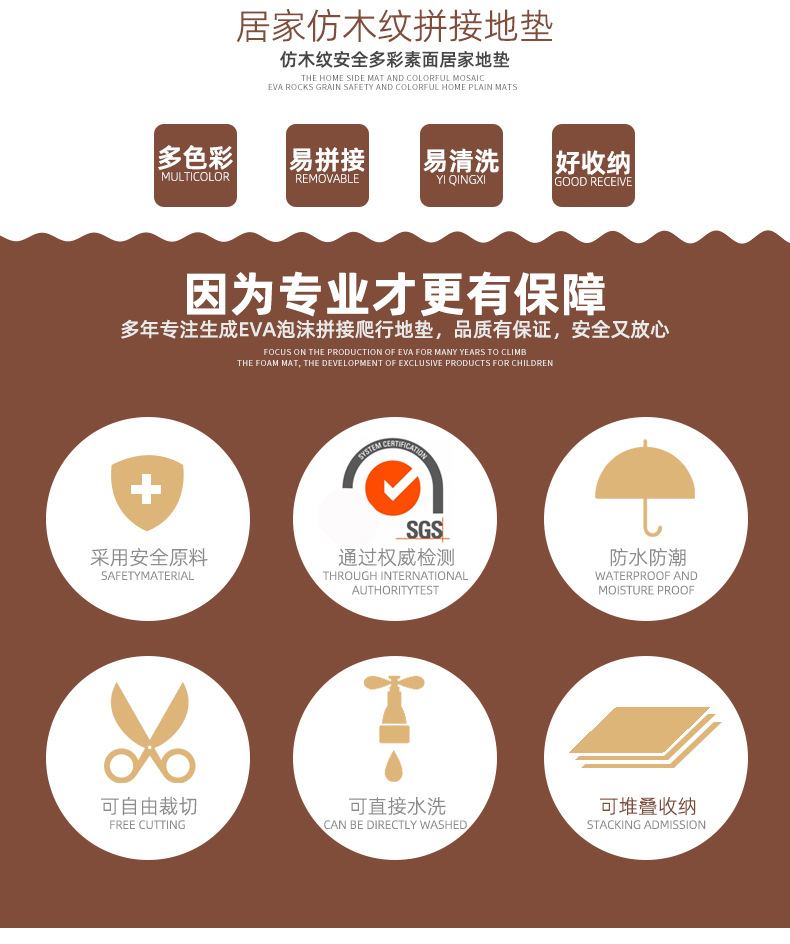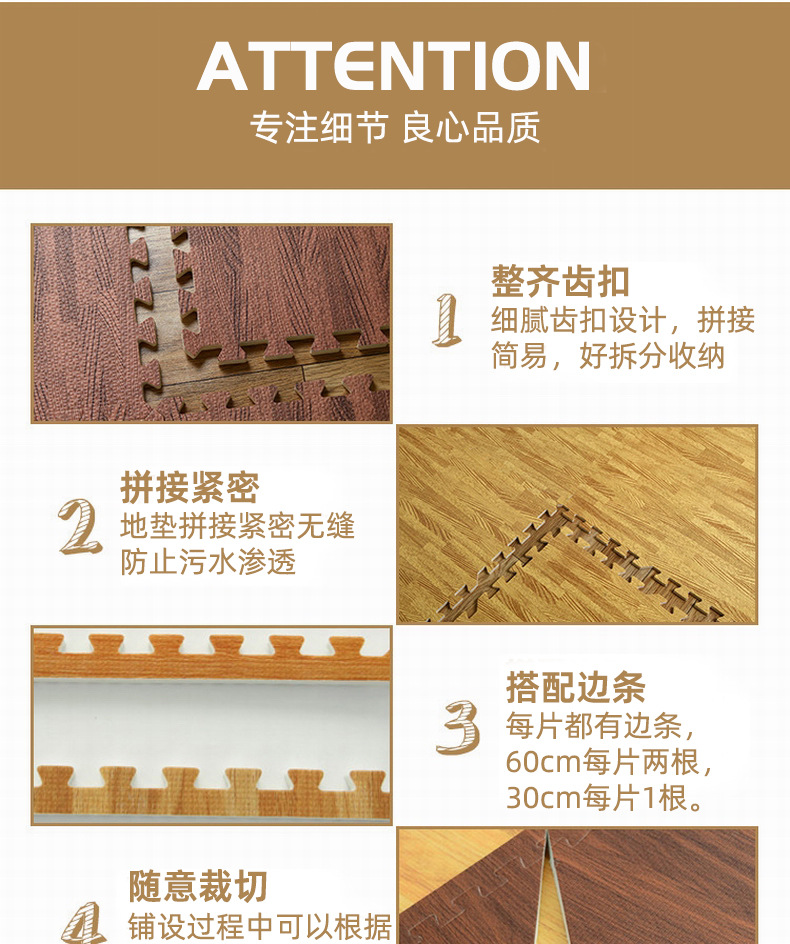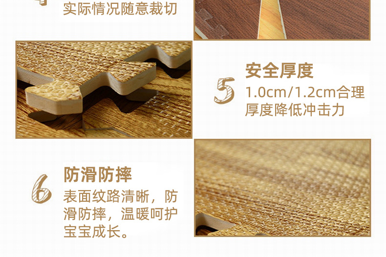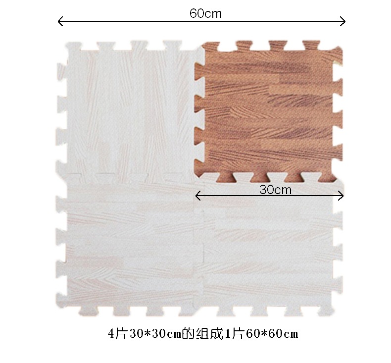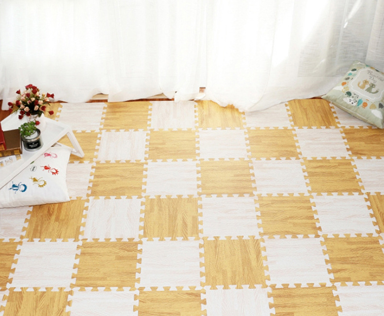 나뭇결 폼 바닥 매트, 클라이밍 매트, 조각 퍼즐 30*30 소형 두꺼운 침실 및 기숙사 크롤링 매트, 낙상 방지 매트