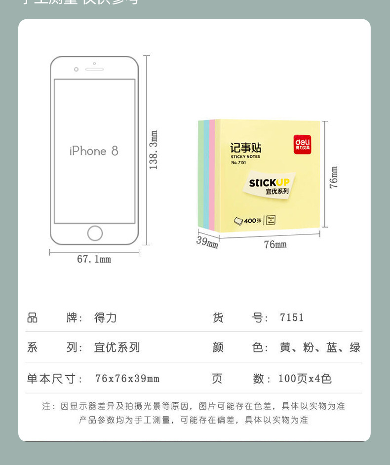 델리 7151 펩시 포스트잇 노트 컬러 오피스 포스트잇 노트 학생 메모 노트