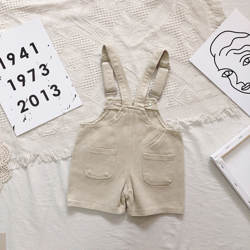 2025년 여름 한국 신상 아동용 멜빵바지 남아 여아용 트윌 코튼 베이비 숄더 스트랩 반바지 트렌디스토어 가기