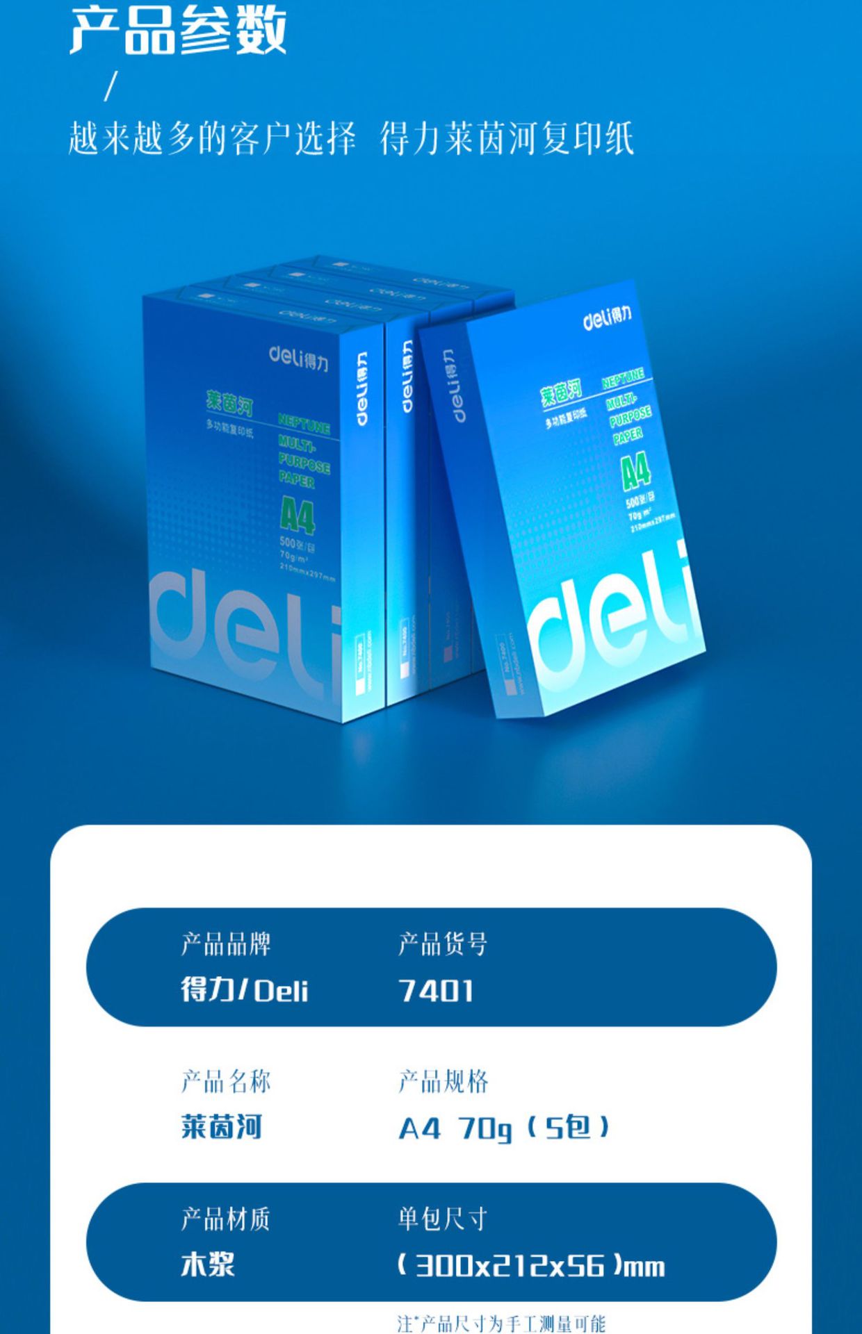 델리 7419 인쇄 종이 4 종이 라인 강 80g 흰 종이 두꺼운 인쇄 복사 종이 양면 슈퍼 화이트 종이 전체 상자스토어 가기
