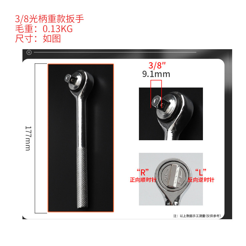 3/8重款棘轮扳手后盖为一字铁盖,重量约0.24kg