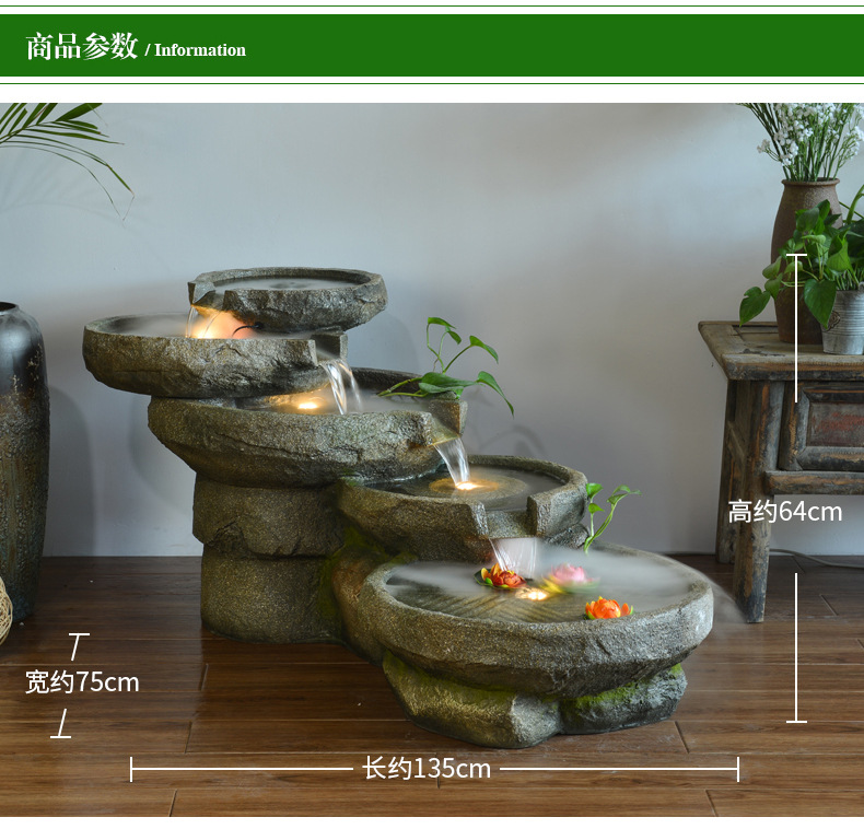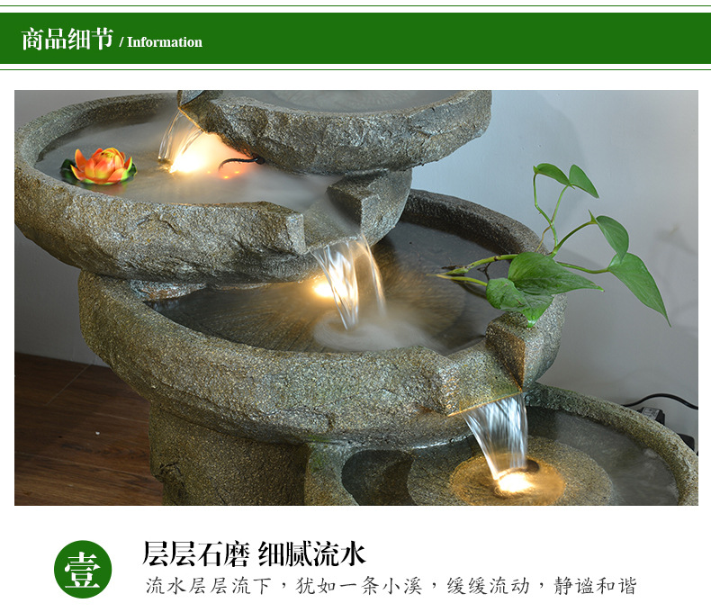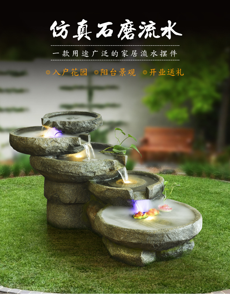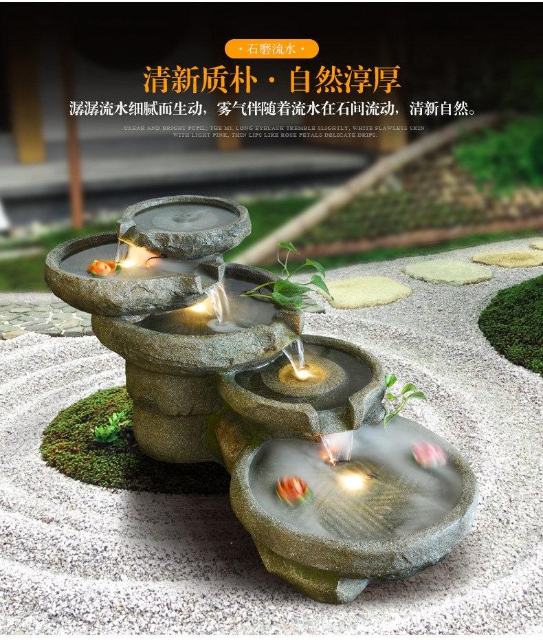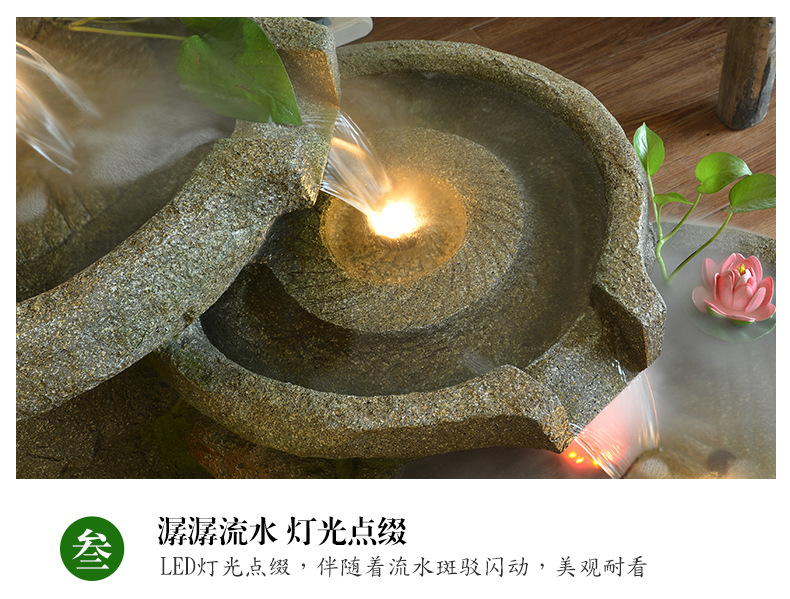 스톤 밀 분수 rockery 흐르는 물 장식품 랜딩 안뜰 거실 물 풍경 호텔 사무실 흐르는 물 운 장식스토어 가기