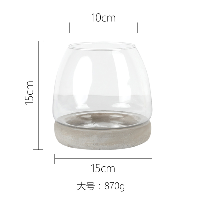 시멘트 바닥 믹스 투명 유리 꽃병 짚 버섯형 수경 식물 꽃 도자기 연구 거실 탁상 꽃꽂이 장식품