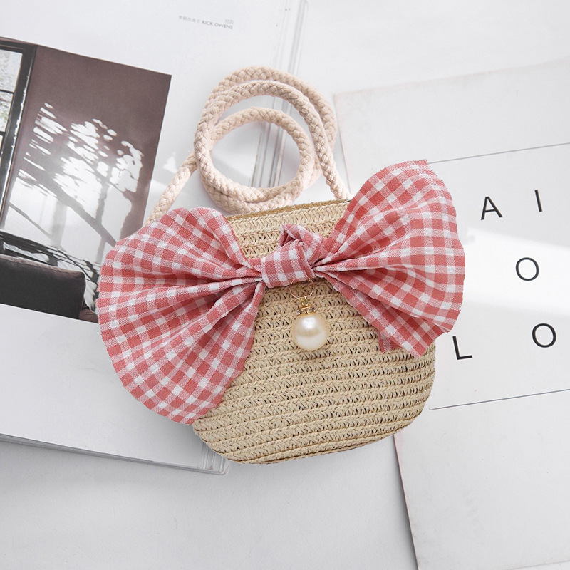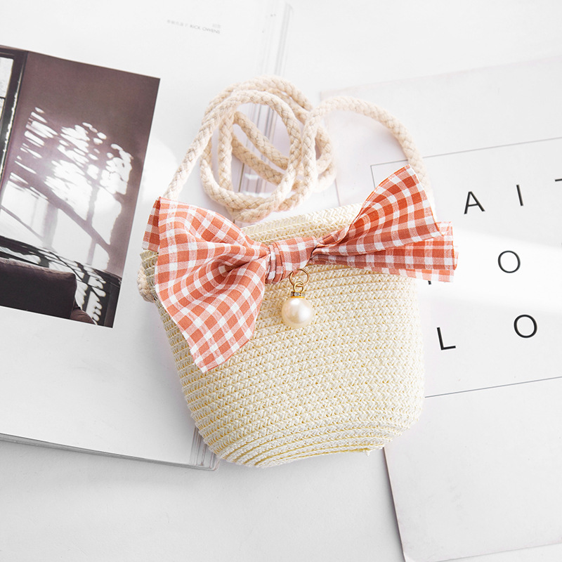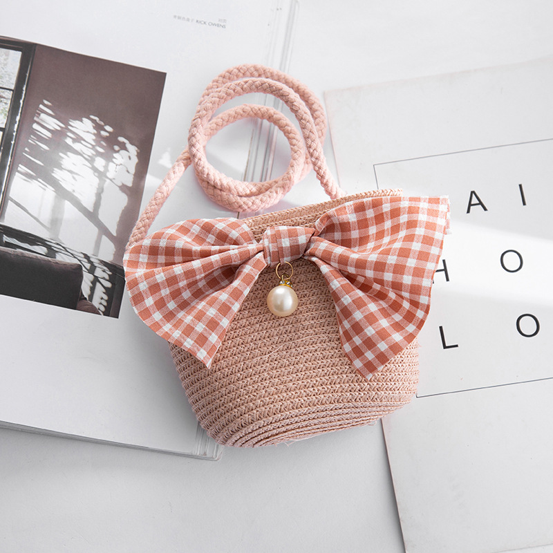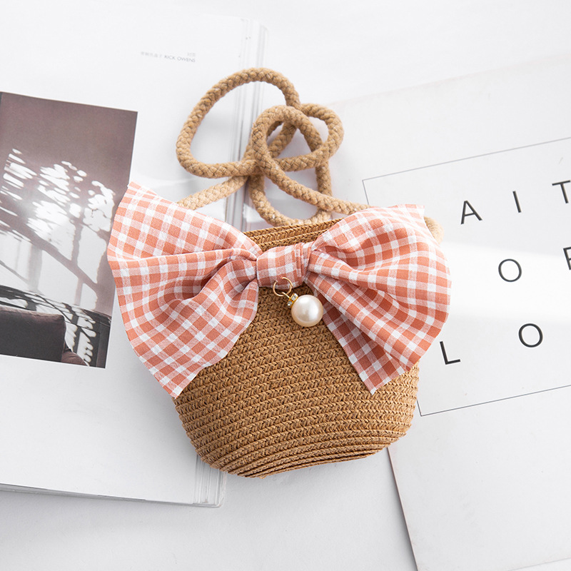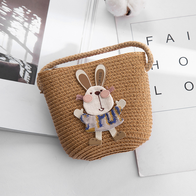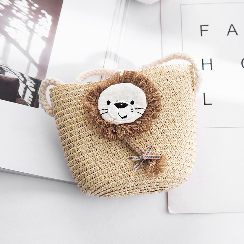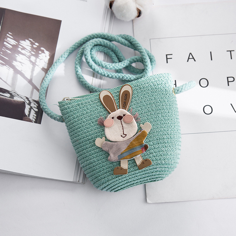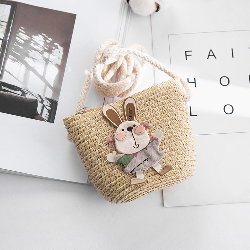 Qiu Nan 어린이 밀짚 가방 한국 패션 새로운 메신저 가방 야외 장식 귀여운 만화 가방 도매스토어 가기