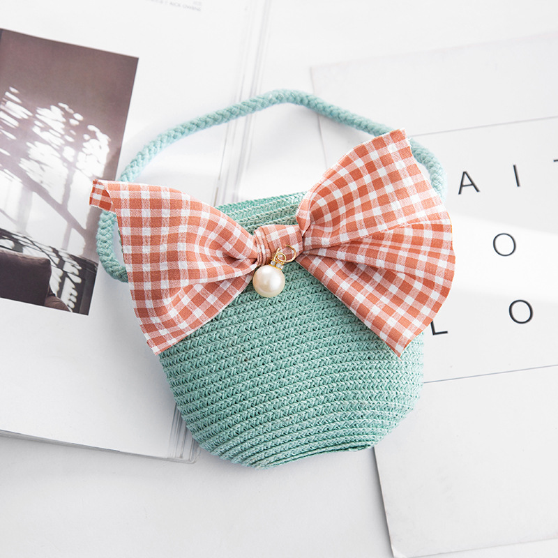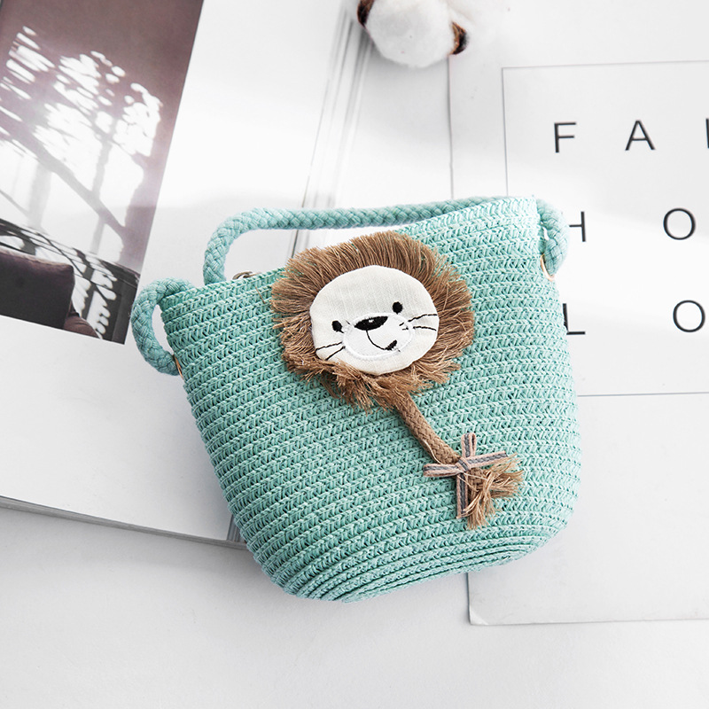 Qiu Nan 어린이 밀짚 가방 한국 패션 새로운 메신저 가방 야외 장식 귀여운 만화 가방 도매