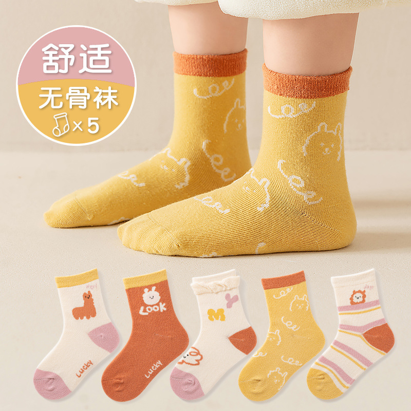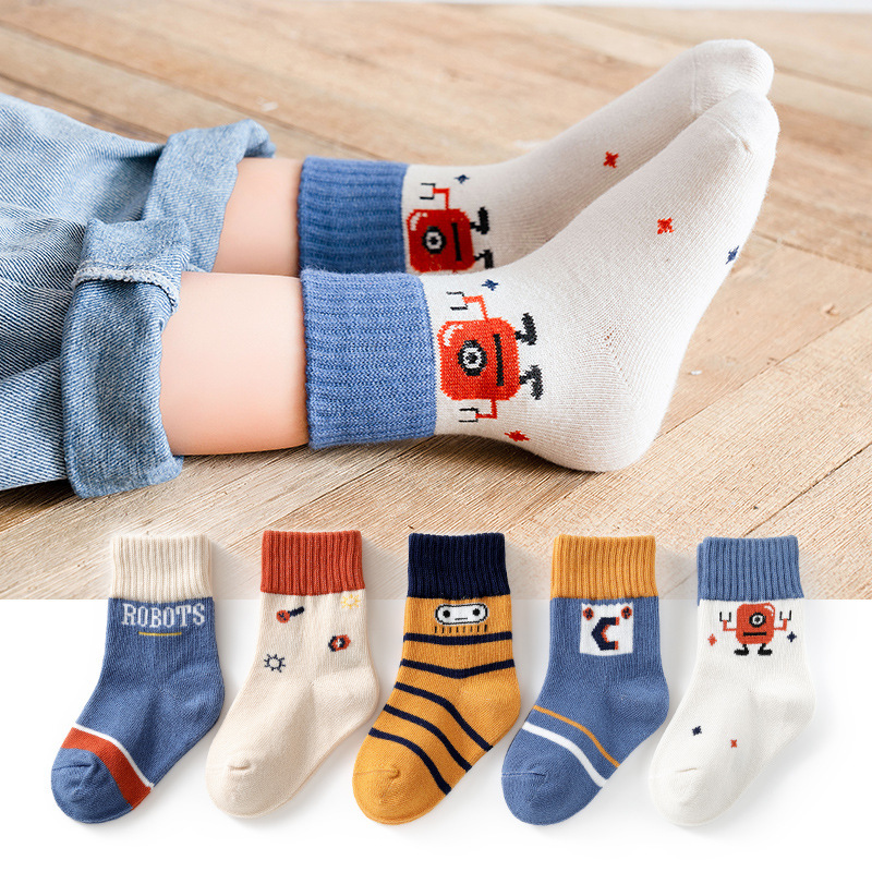 봄과 가을 아기 양말 가을과 겨울 중간 튜브 순수한 남자의 겨울 여성 아기 만화 어린이 양말 일본과 한국 스타일 폴리 에스터 면 바닥 양말