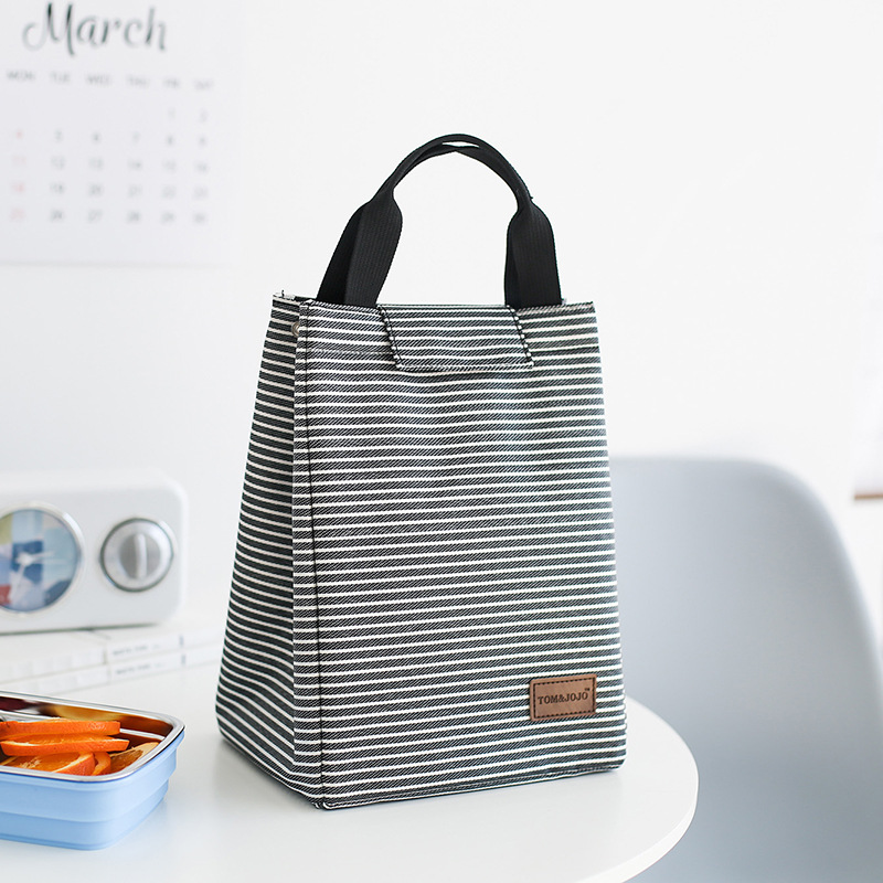 2025 새로운 절연 가방 줄무늬 점심 가방 알루미늄 필름 절연 가방 옥스포드 천 휴대용 점심 가방 제조 업체 판매스토어 가기