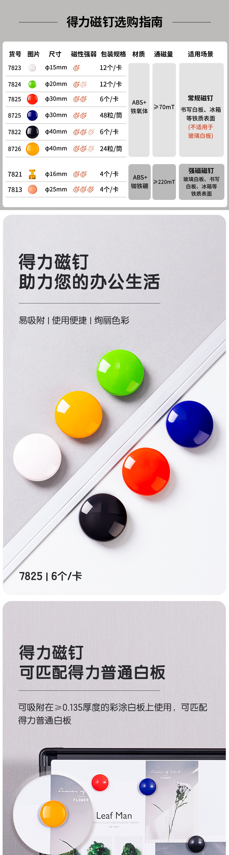 델리 7823/7825 화이트 보드 마그네틱 버클 칠판 마그네틱 자석 아티코 교육 사무실 마그네틱 과립 용 마그네틱 손톱스토어 가기