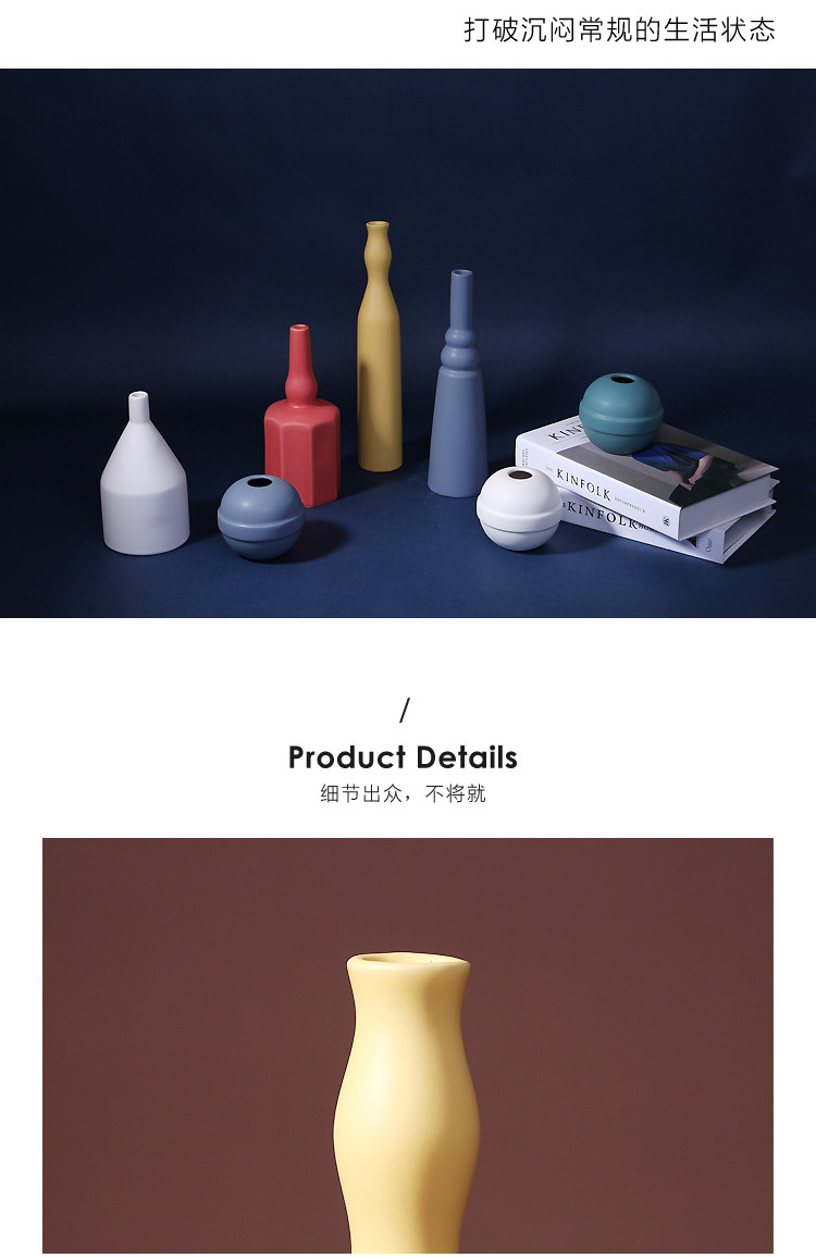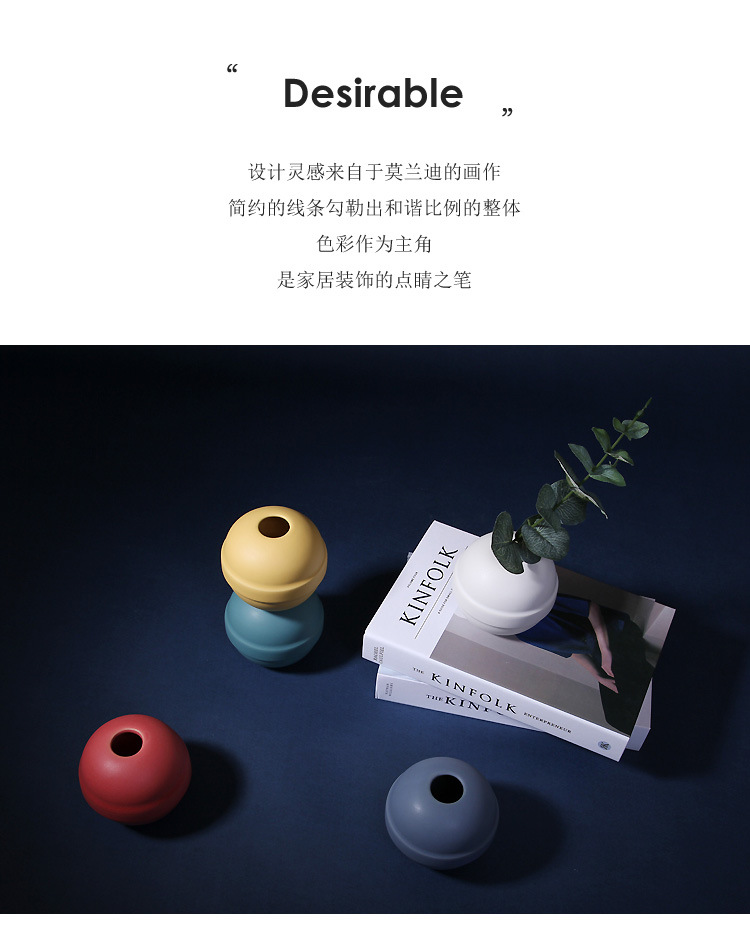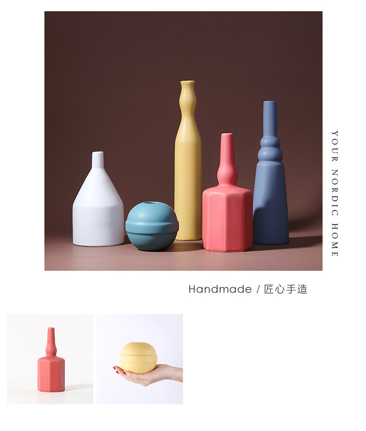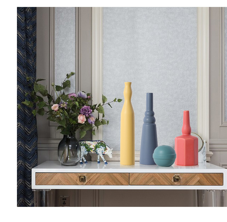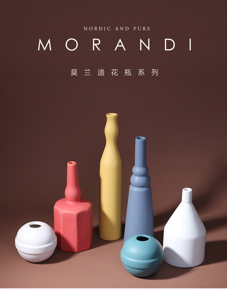 북유럽 모란디 컬러 세라믹 꽃병 간단한 거실 호텔 장식 장식품 부드러운 공예 도매