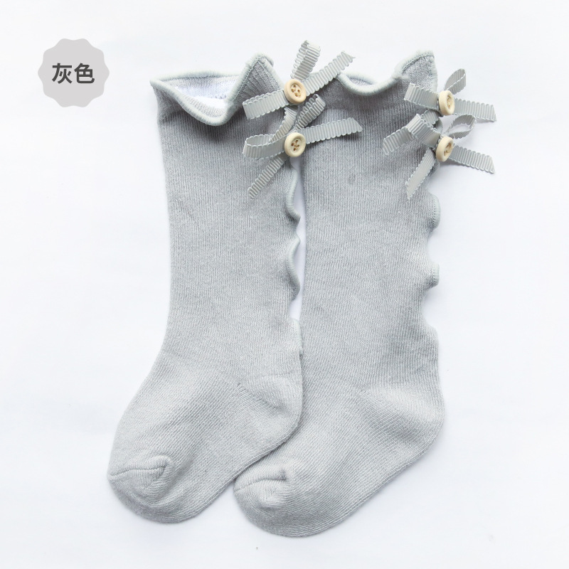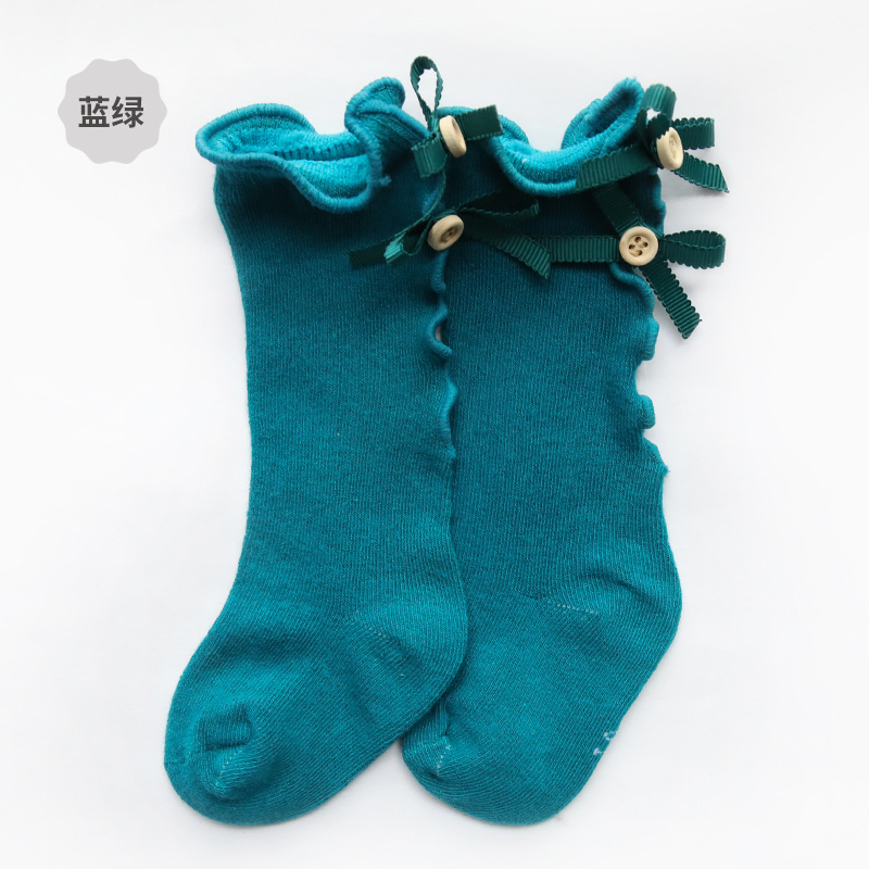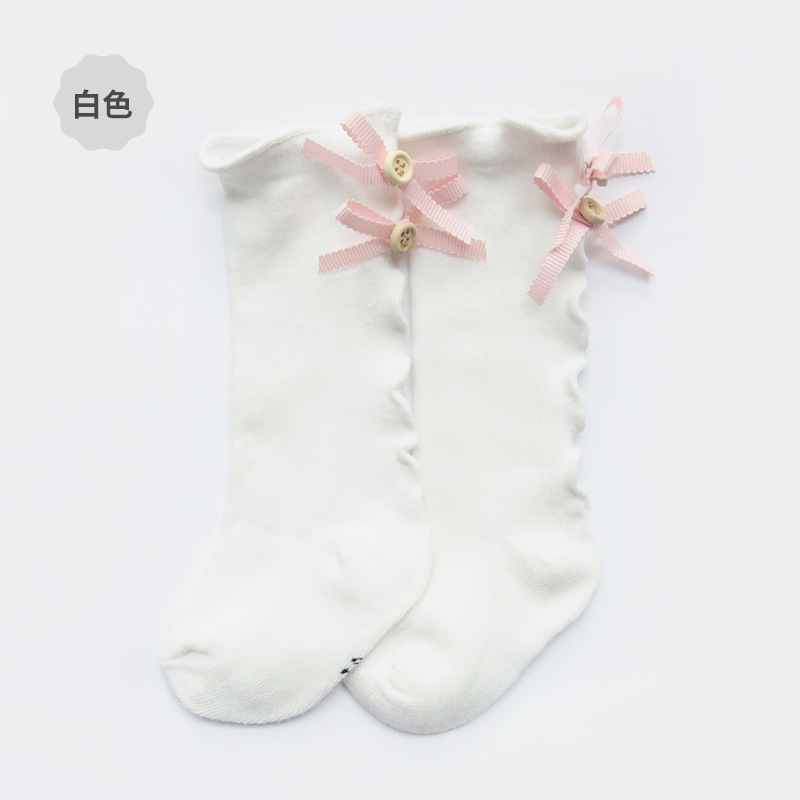 크로스 보더 봄과 가을 활 아기 튜브 양말 단색 긴 튜브 어린이 양말 나무 귀 만화 소녀 레이스 양말