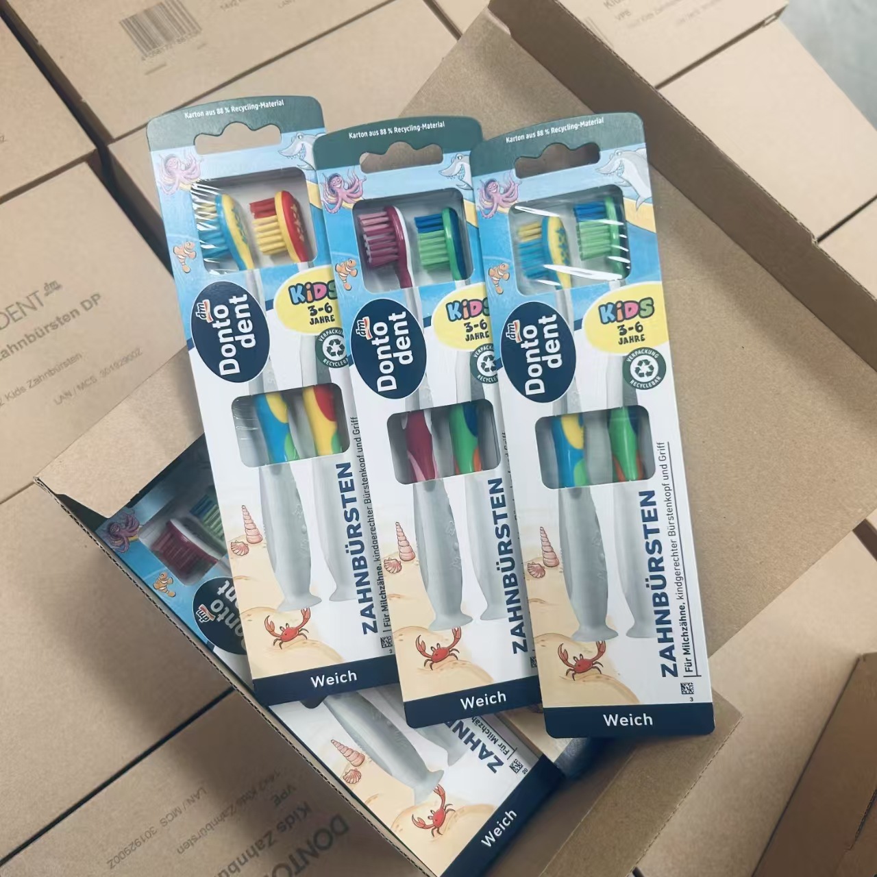 일반 무역 독일 수입 Dontodent 미끄럼 방지 손잡이 어린이 칫솔 3-6 세 우유 2 팩