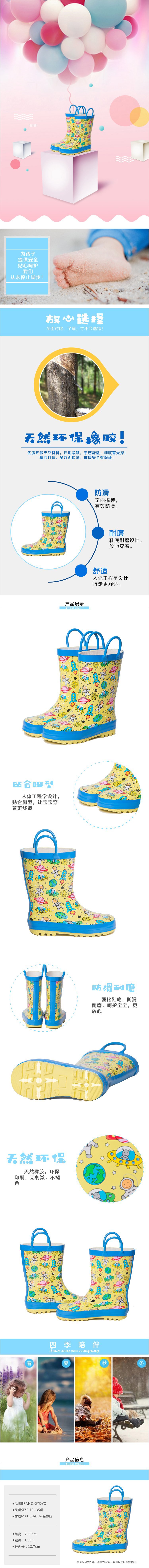 만화 우주 테마 어린이 장화, 이중 손잡이, 착탈이 용이함, 어린이 방수 및 미끄럼 방지, 크로스보더 특별 내마모성 장화