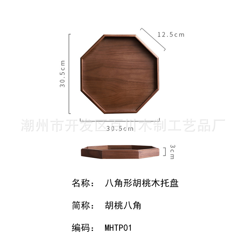14 호두 팔각형 접시 북미 블랙 호두 물 용품 가정용 식당 접시 팔각형 접시 나무 접시 트레이스토어 가기