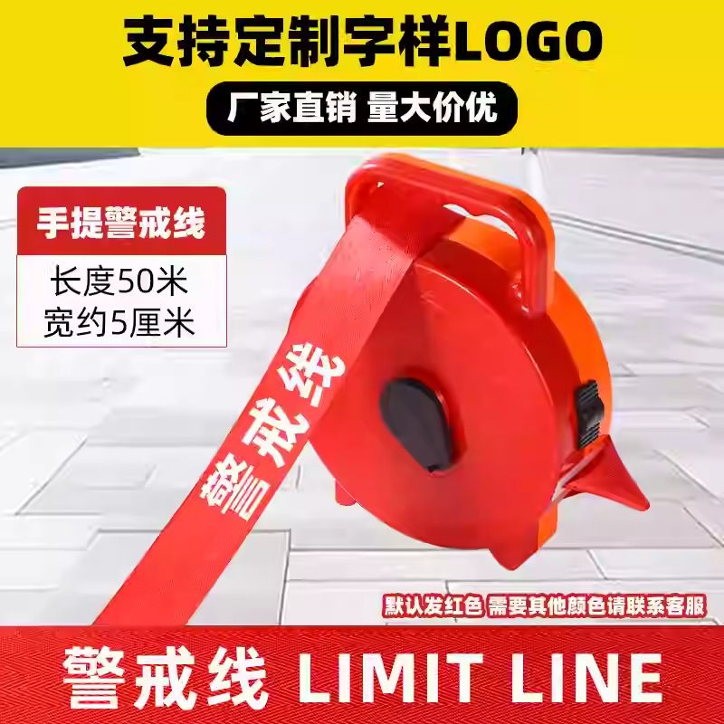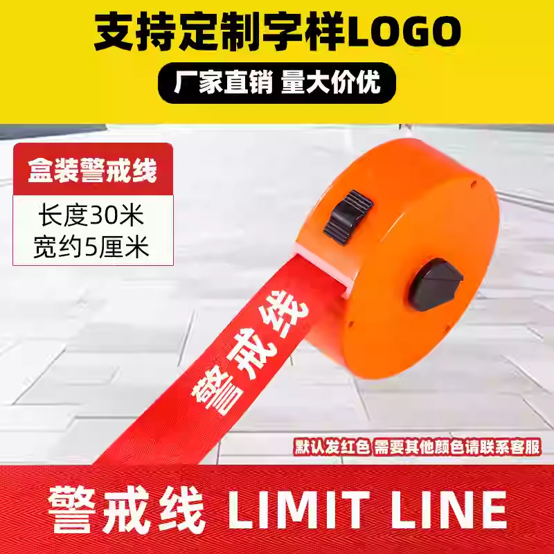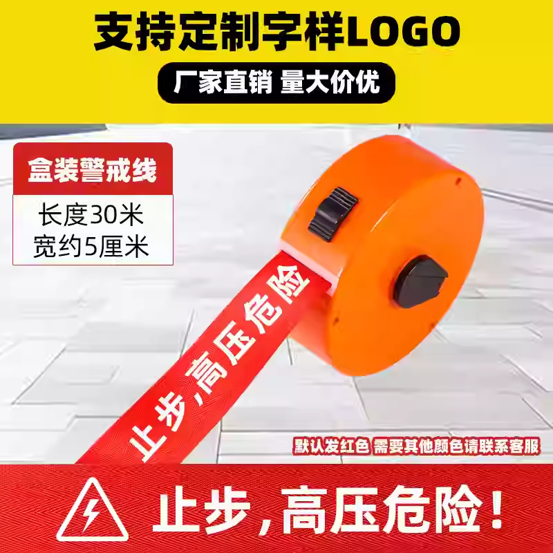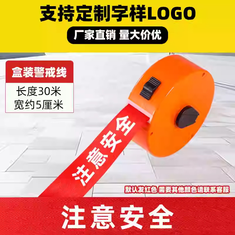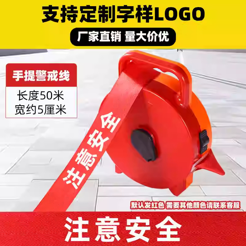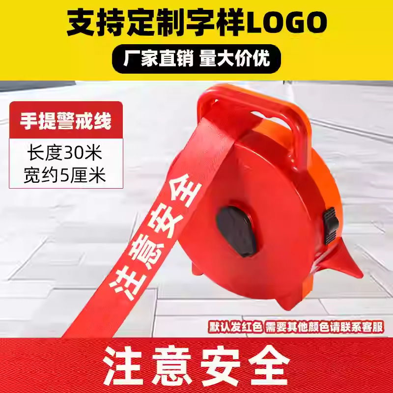 재고 도매 전원 안전 경고 벨트 경고 라인 30 미터 50 미터 텔레스코픽 격리 벨트 원형 휴대용 상자 경고 벨트