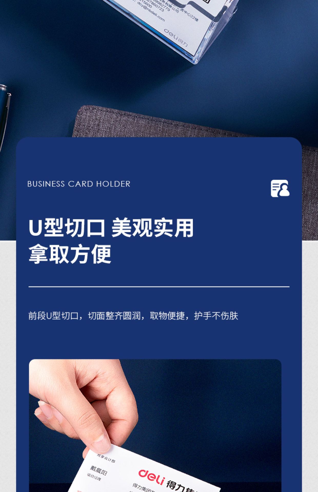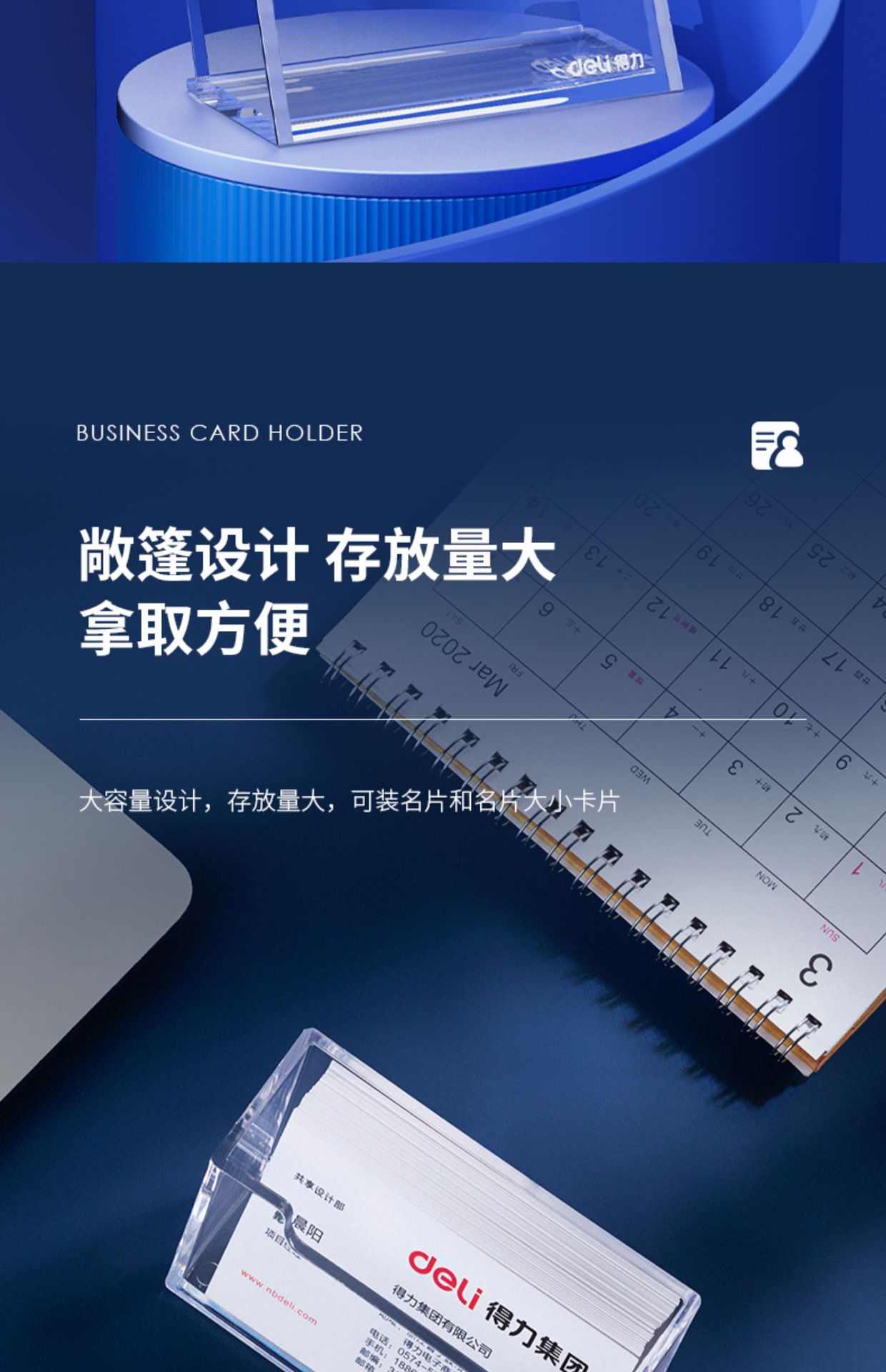 델리 문구 7623 명함 홀더 데스크탑 명함 케이스 투명 플라스틱 명함 케이스 비즈니스 오피스 명함 홀더
