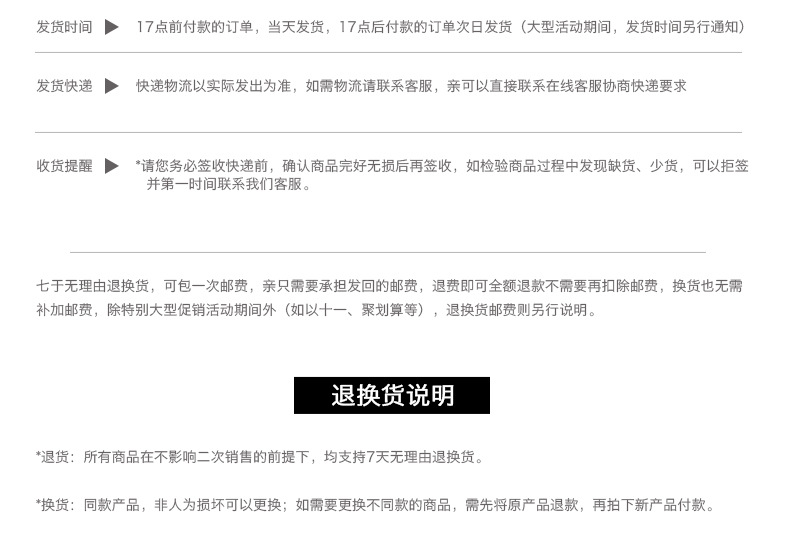 卖家申明:因为本店内大部分产品属于重货或者膨胀货,发到各地运费无法计算,产品运输费用无法设置,实际快递运费基本上会小于等于上述设置值(网站上设置为10元),具体运费请您跟客服沟通运费再下单,产品较重、量大建议走货运。给您带来不便,请见谅。