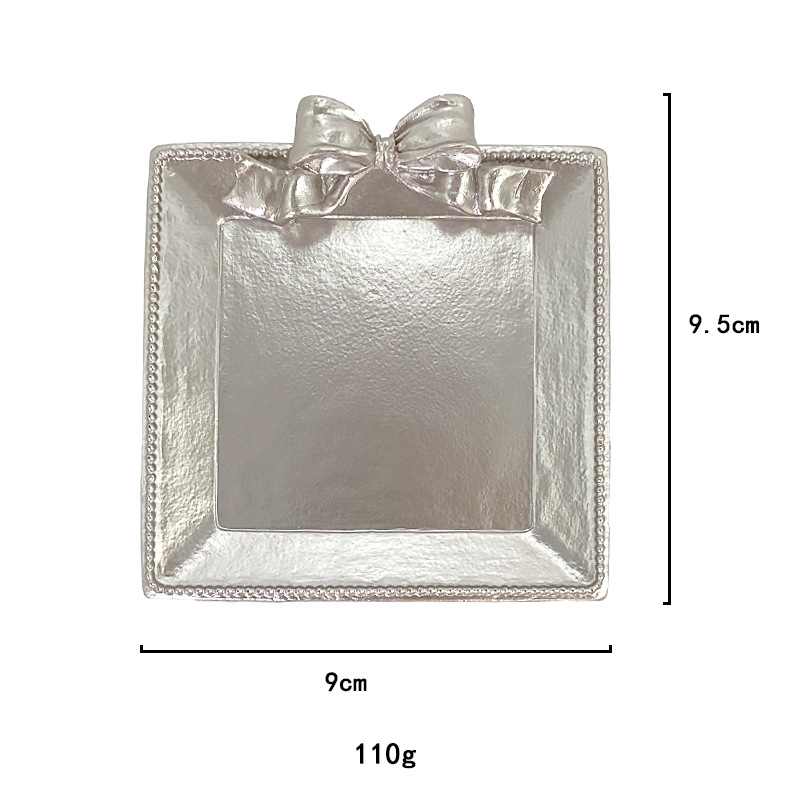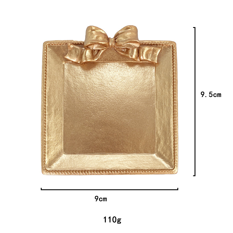 【品名】:树脂蝴蝶结首饰碟摆件 金色银色,方形圆形