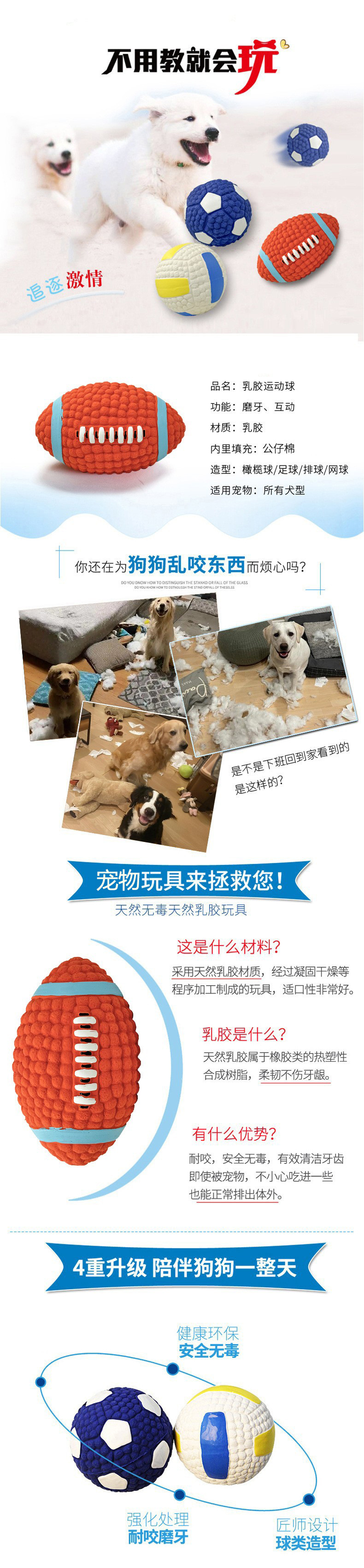 애완동물 장난감 공, 씹기 방지, 강아지 소리나는 라텍스 럭비공 장난감, 자가놀이 및 지루함 해소, 해외 아마존 신제품