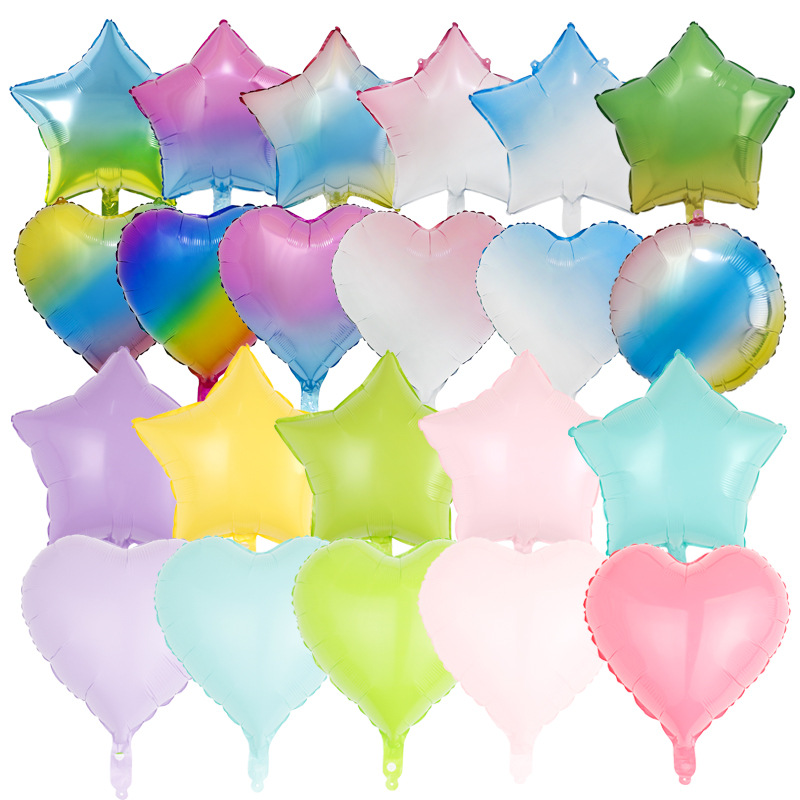 18 인치 다섯개 별 하트 모양의 알루미늄 필름 풍선 무지개 그라디언트 마카롱 풍선 생일 파티 장식