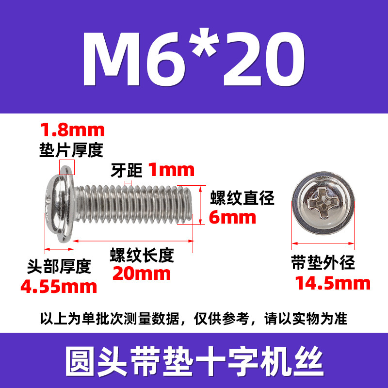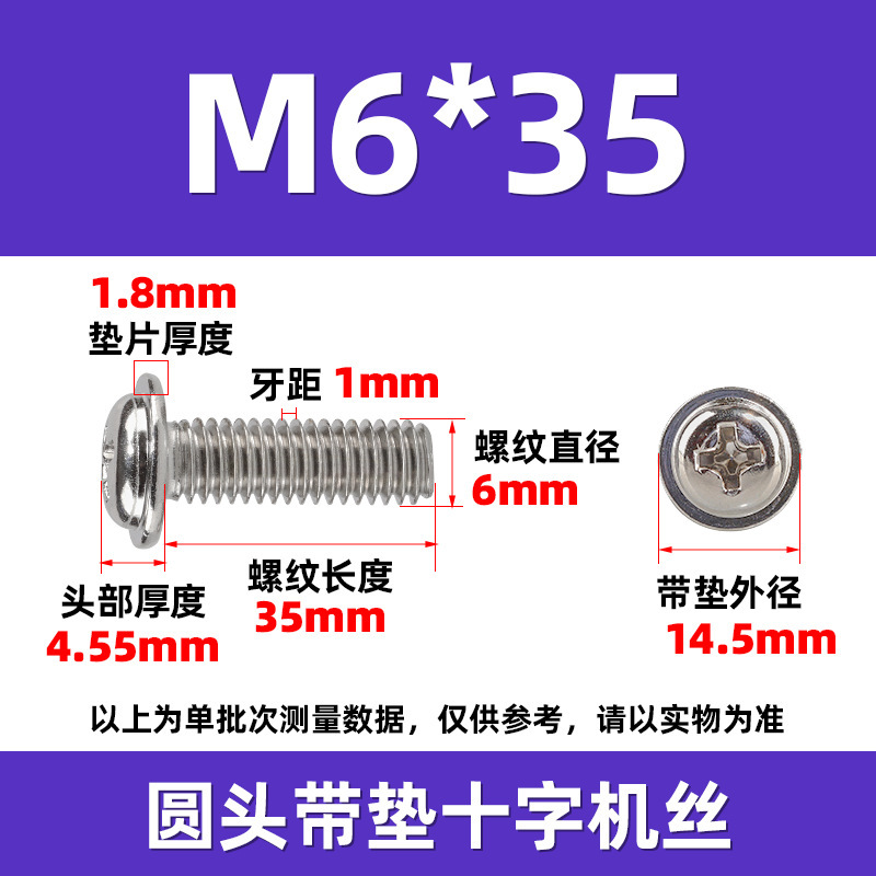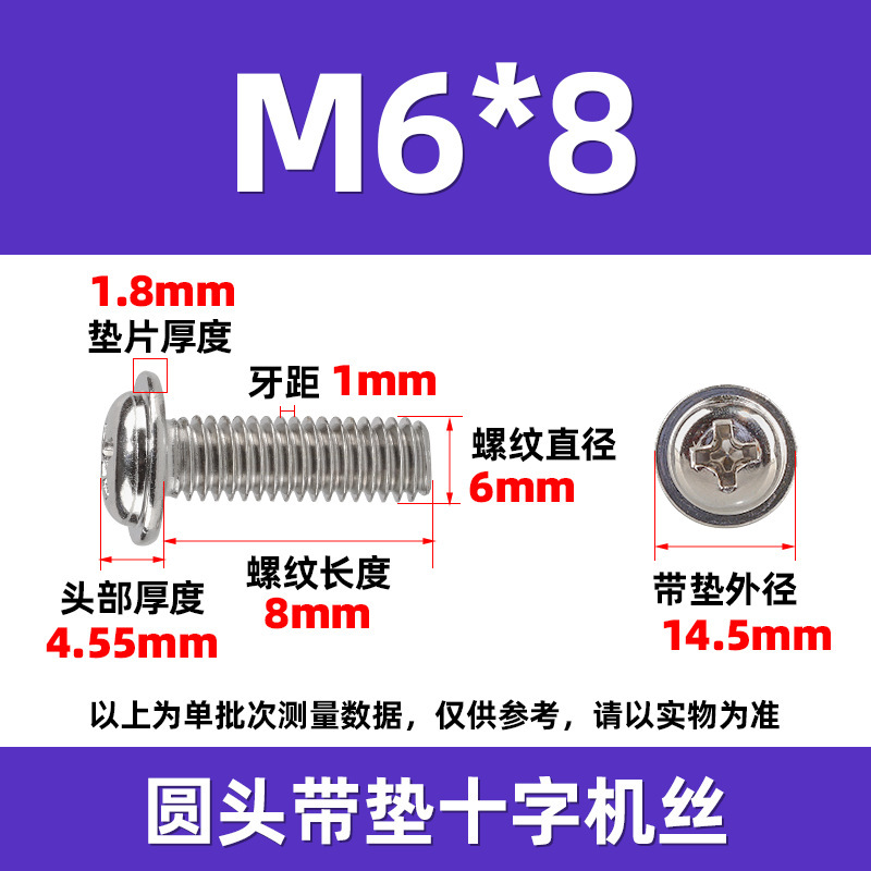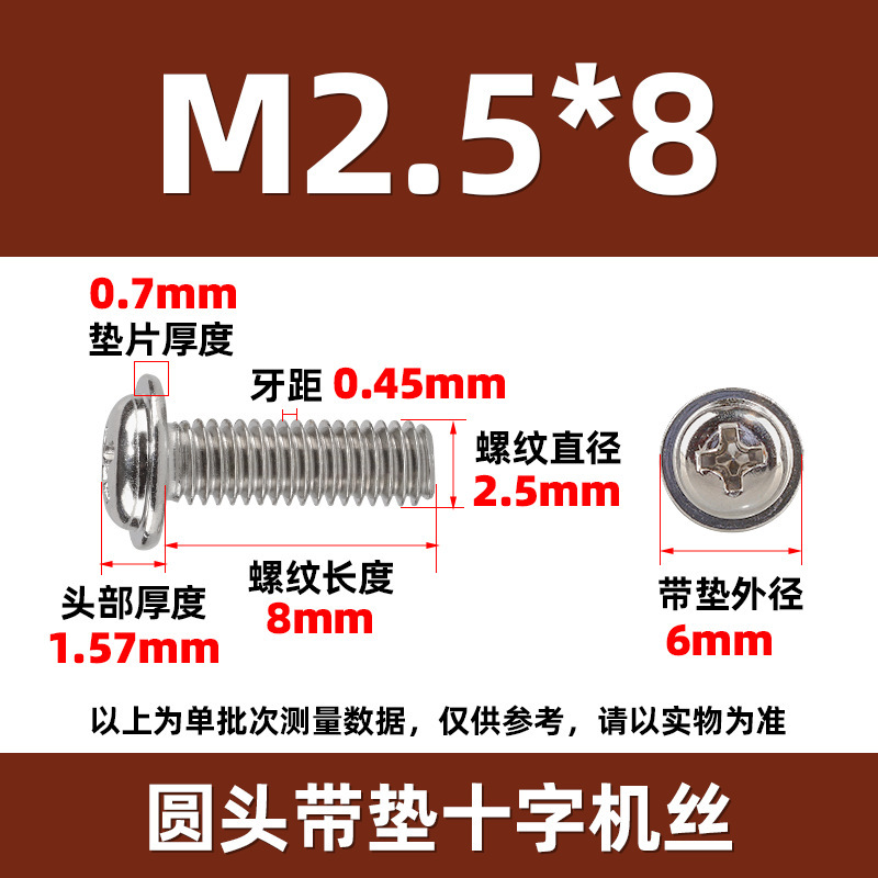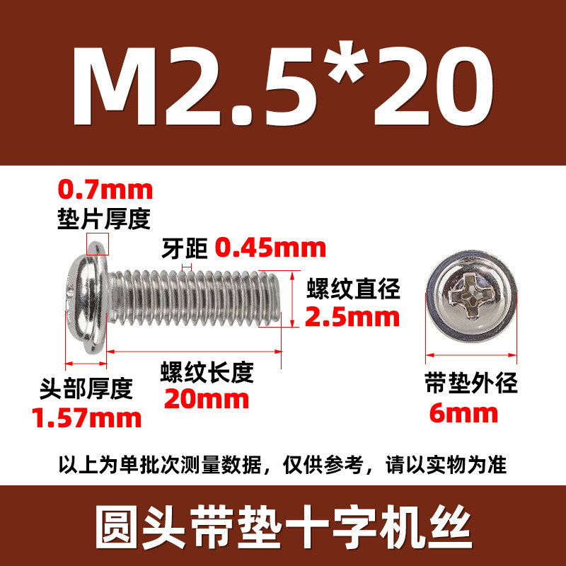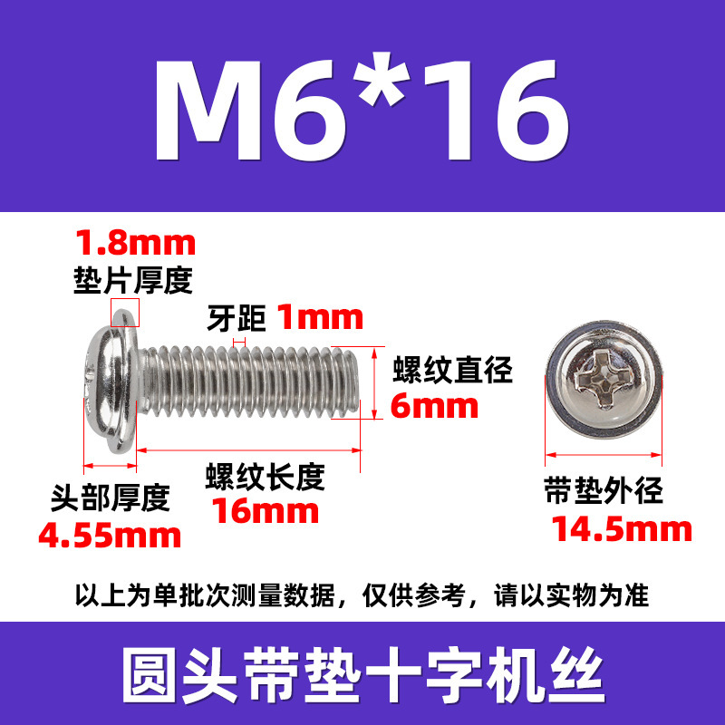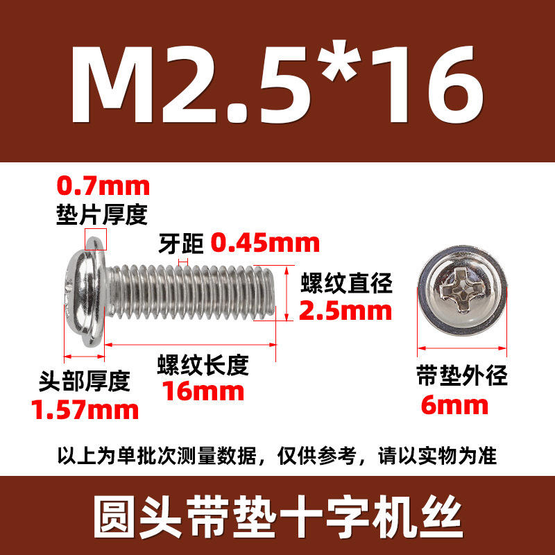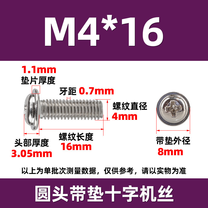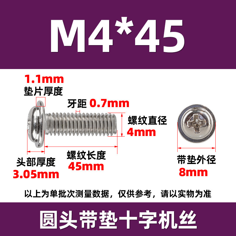 304 스테인레스 스틸 크로스 라운드 헤드 (패드 나사 포함) DIN967 중간 나사 M2M3M4M5M6