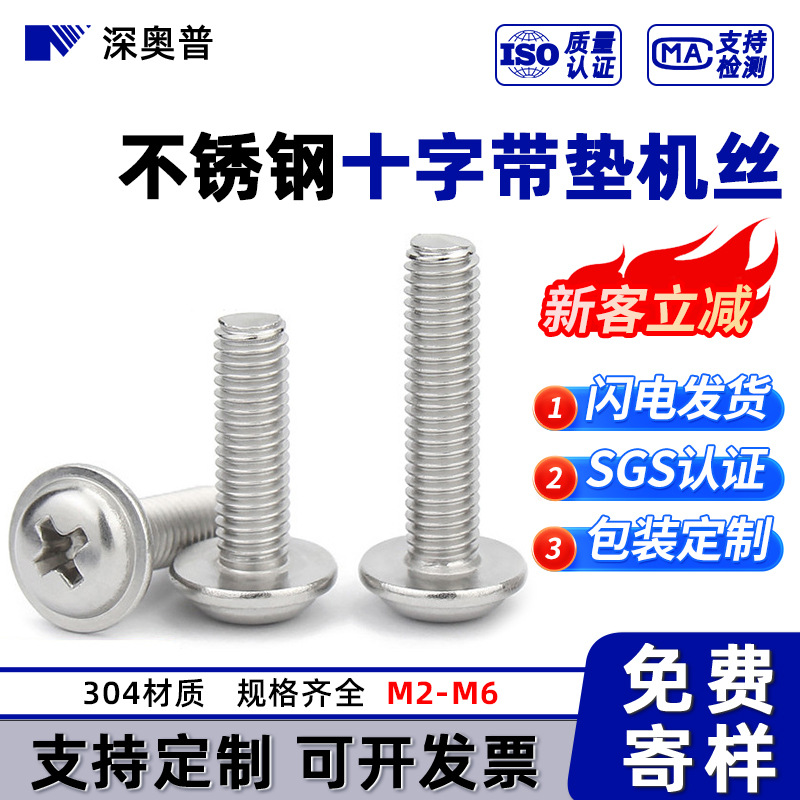 304 스테인레스 스틸 크로스 라운드 헤드 (패드 나사 포함) DIN967 중간 나사 M2M3M4M5M6스토어 가기