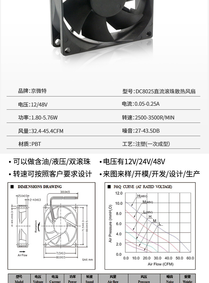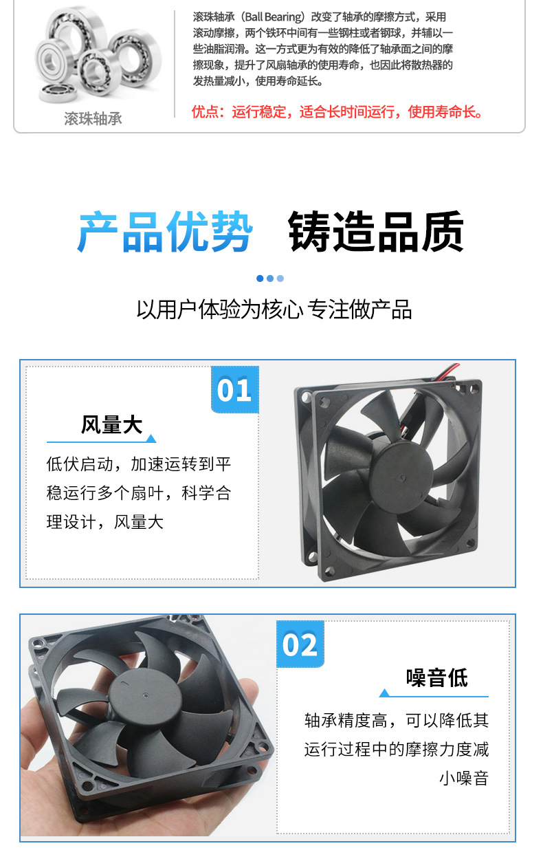 8025 볼 DC 냉각 팬 12V24V 고속 팬 컴퓨터 CPU 자동 팬 제조업체