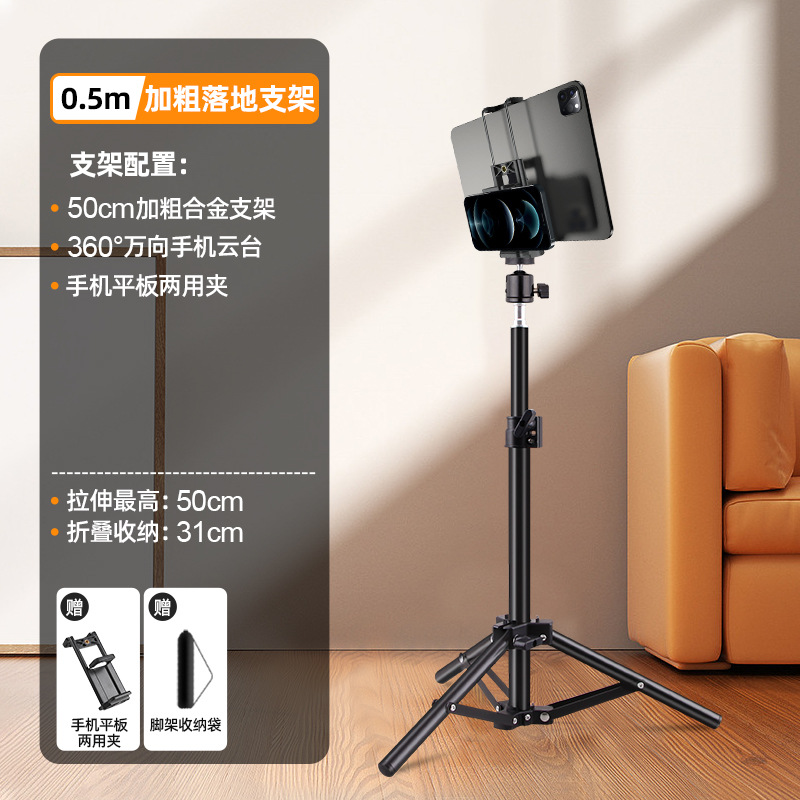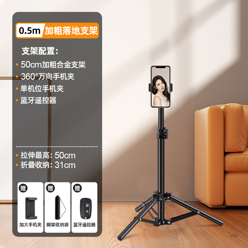 휴대 전화 스탠드 라이브 삼각대 휴대용 카메라 비디오 셀카 평면 바닥 접이식 휴대 전화 랙 삼각형 도매스토어 가기