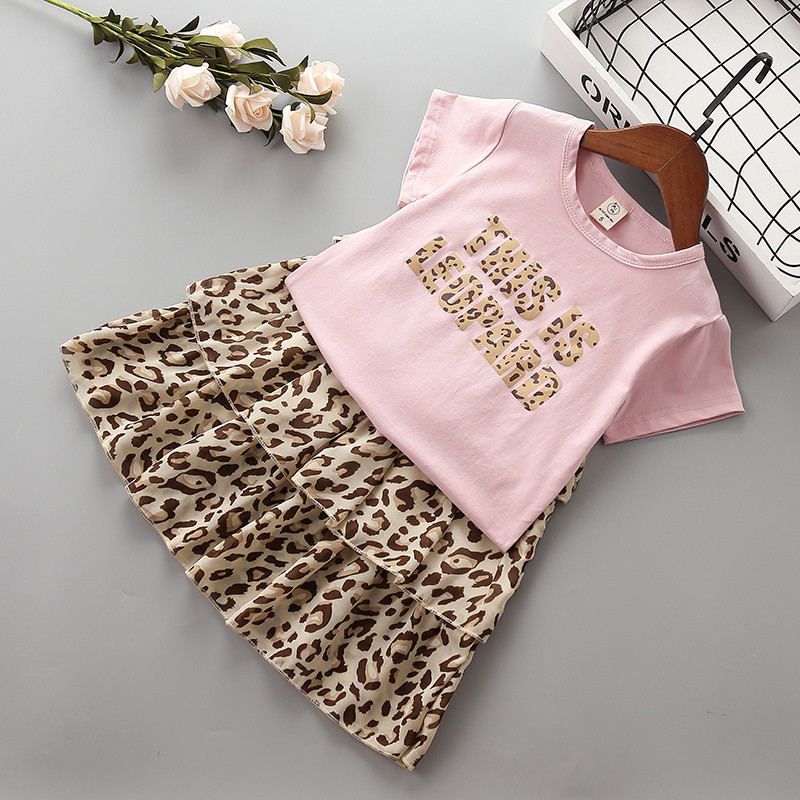 여름 아동복 외국 무역 소녀 인쇄 편지 티셔츠 + 쉬폰 허리 스커트 투피스 세트 어린이 세트스토어 가기