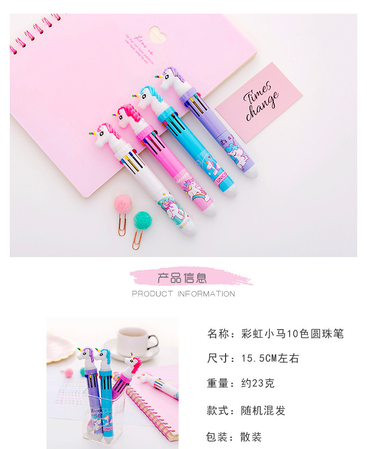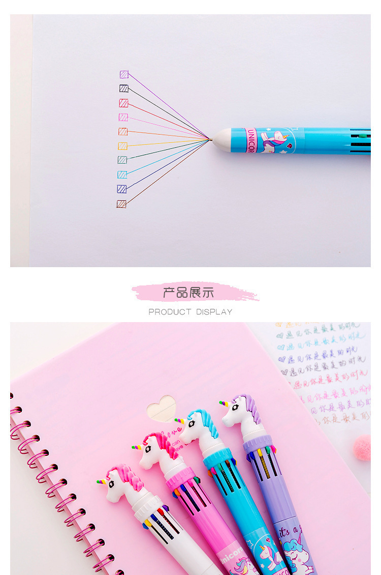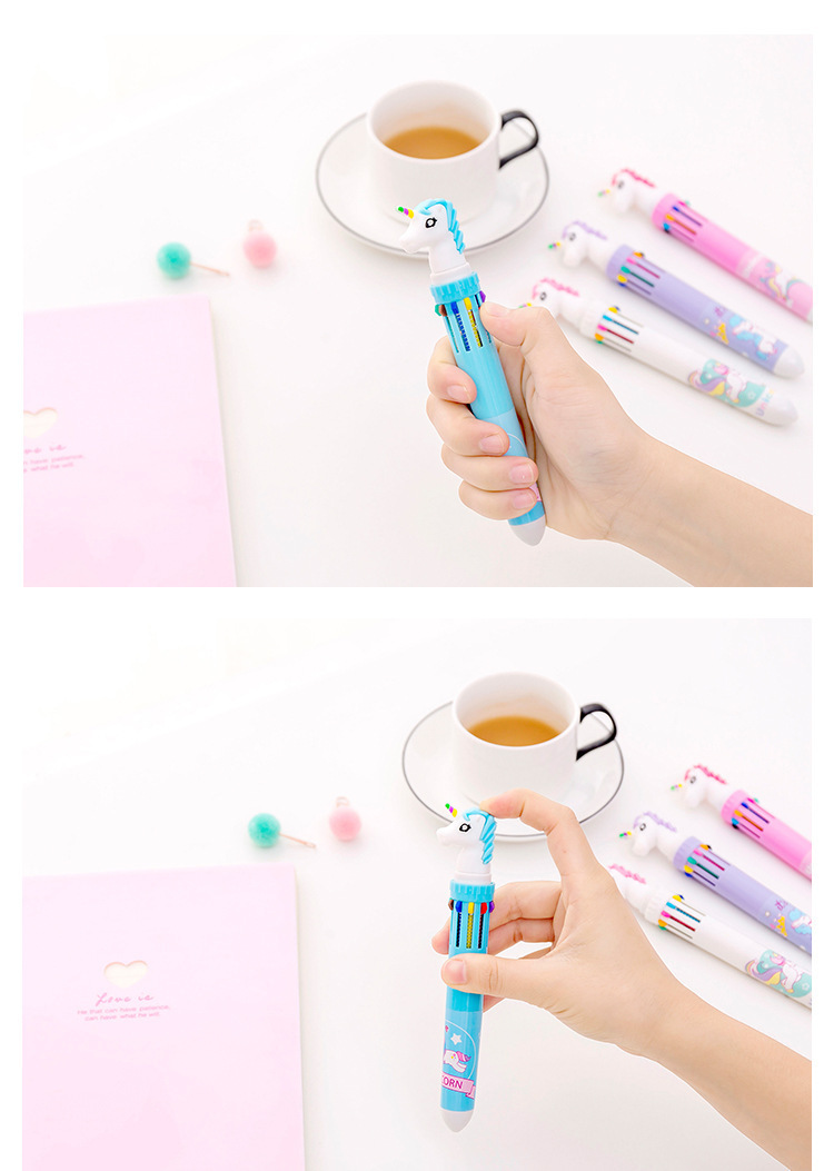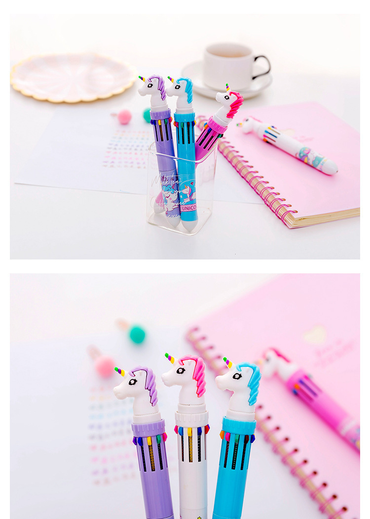 한국 문구 창조적 인 귀여운 6/10 컬러 유니콘 볼펜 멀티 컬러 펜 학생 쓰기 도구 도매