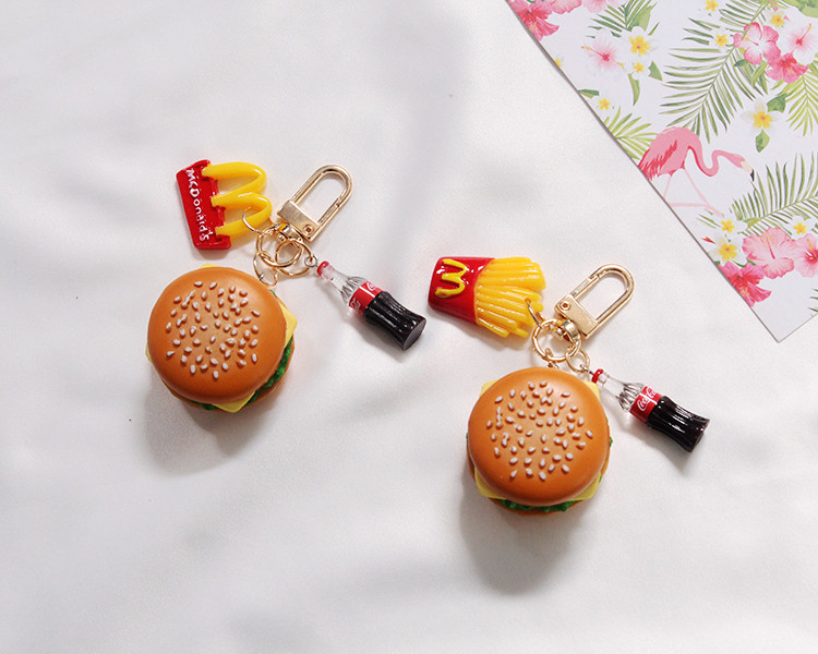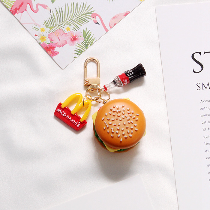 햄버거 튀김 키 체인 펜던트 DIY 수제 펜던트 자동차 열쇠 고리 간단한 개인화 된 창조적 인 선물