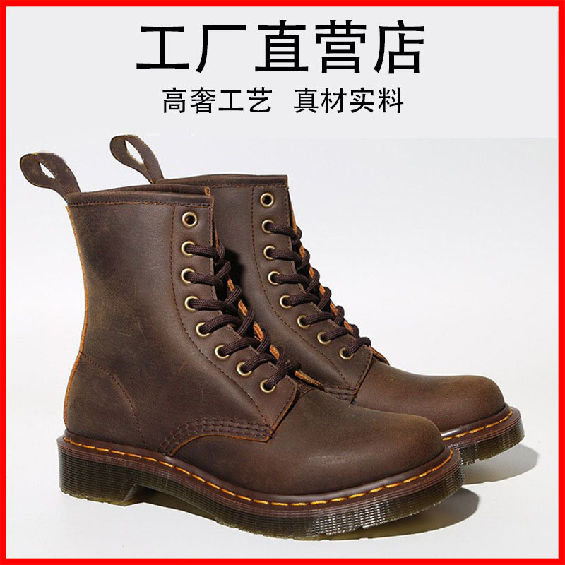 수제 마틴 부츠 DR1460 Crazy Horse cowhide 영국 복고풍 다크 브라운 플랫 바지 부츠 남성과 여성 짧은 싱글 부츠스토어 가기