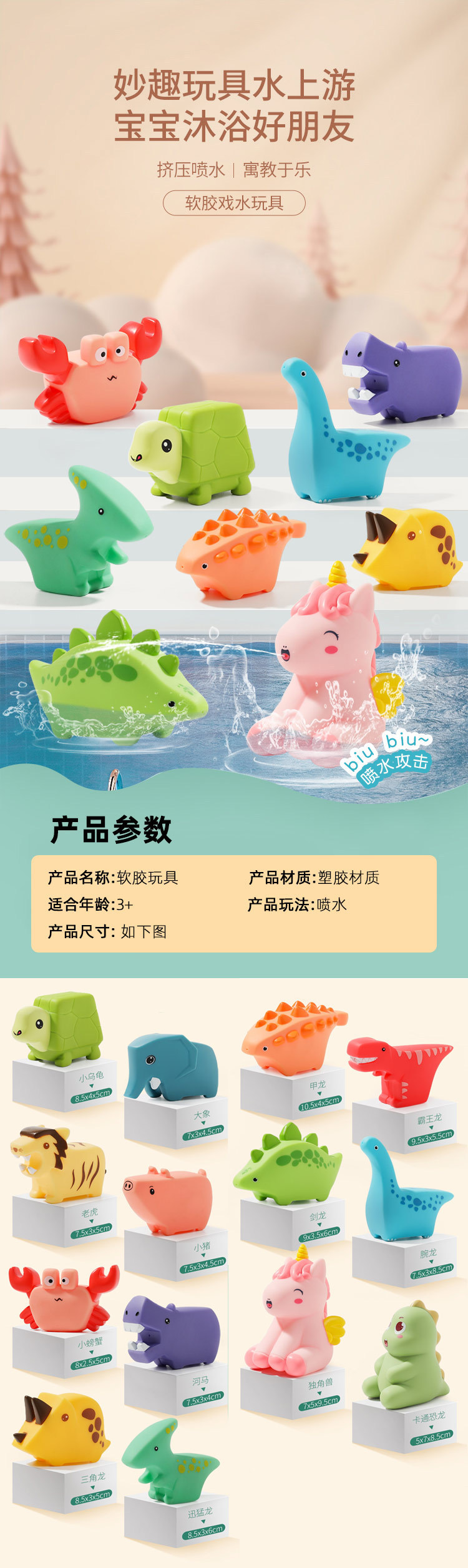 • [부드러운 플라스틱 물놀이] 물동물 3마리 [가방]