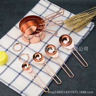 북유럽 인 스타일 9 개 세트 로즈 골드 황동 측정 컵 숟가락 8 개 스테인레스 스틸 구리 도금 티타늄 골드스토어 가기