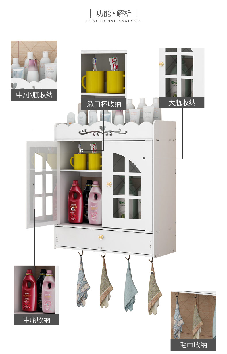 화장실 벽걸이 화장품 보관함 화장실 용품 방진 벽걸이 수납 랙 홀 욕실 수납 랙스토어 가기