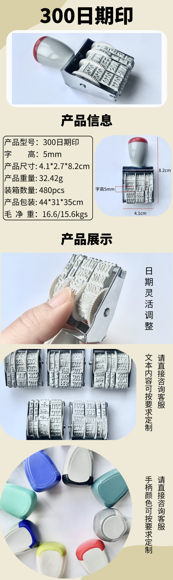 원래 제조업체에서 직접 공급하는 300개의 스탬프 핸드북 영어 및 프랑스어 날짜 스탬프 재료 롤러 휠 날짜 스탬프
