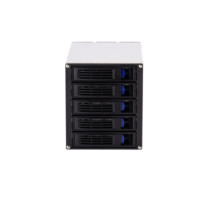 5.模组占用3个5.25〞 扩展位(光驱位),提供5个热插拔硬盘托架;
