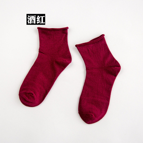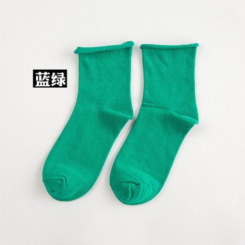 쌓인 양말 임산부 양말 순면 여름 여성용 중간 길이 양말 봄과 가을 얇은 한국식 아카데믹 스타일 짧은 양말 여성용 유행