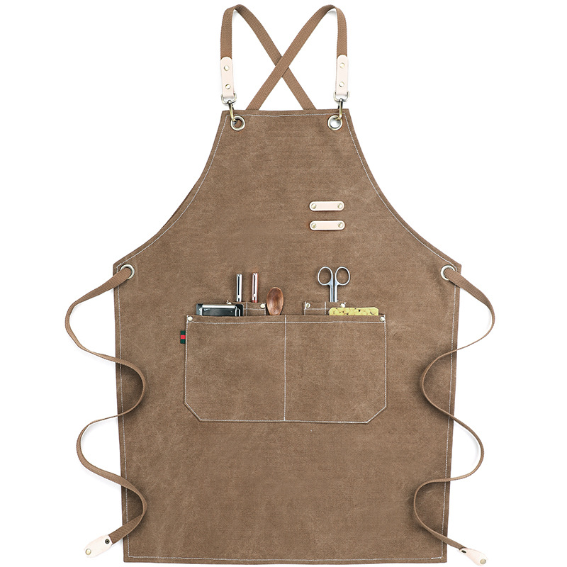 한국 스타일 캔버스 바리스타 앞치마 로고 인쇄 밀크티 케이크 미용실 작업복 민소매 워싱 캔버스스토어 가기