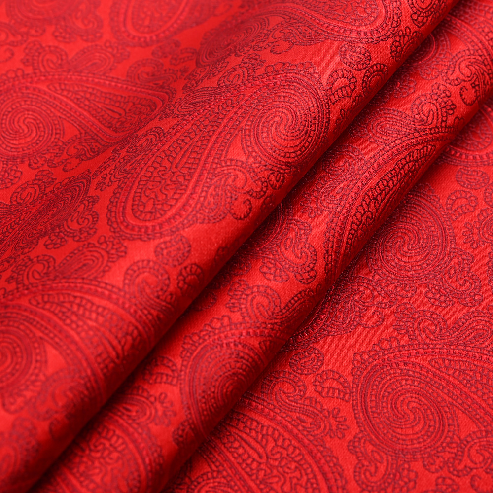 폴리 에스터 실크 레드 자카드 원사 염색 넥타이 원단 페이즐리 캐슈 꽃 신랑 최고의 남자 웨딩 넥타이 원단