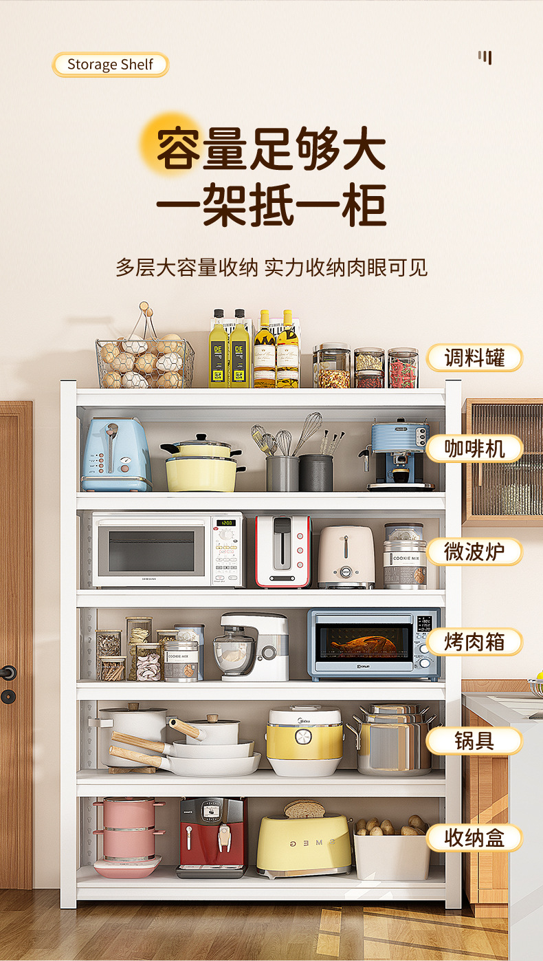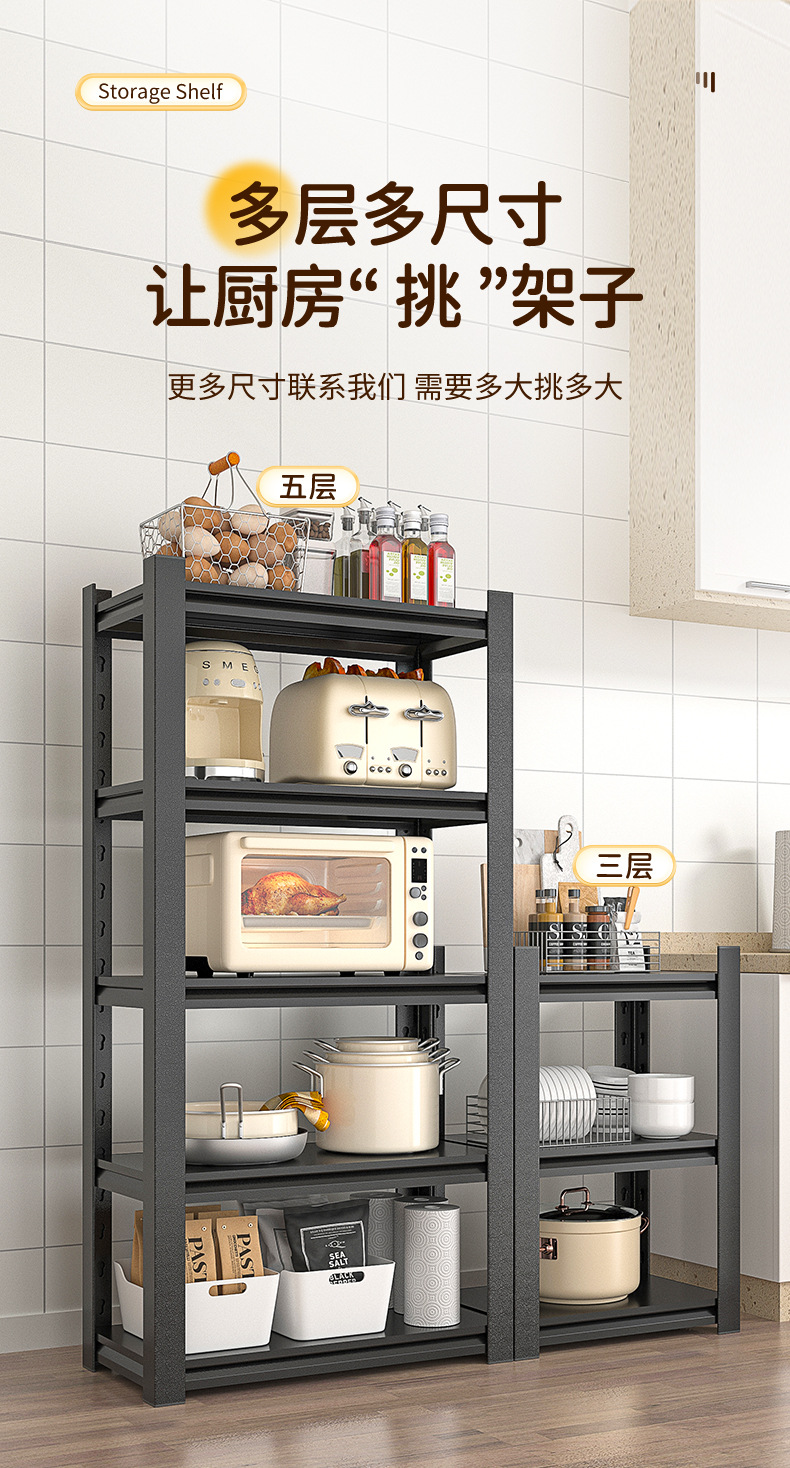 주방 보관 선반 바닥 다층 다기능 가정용 전자 레인지 오븐 냄비 랙 저장 선반 캐비닛 선반