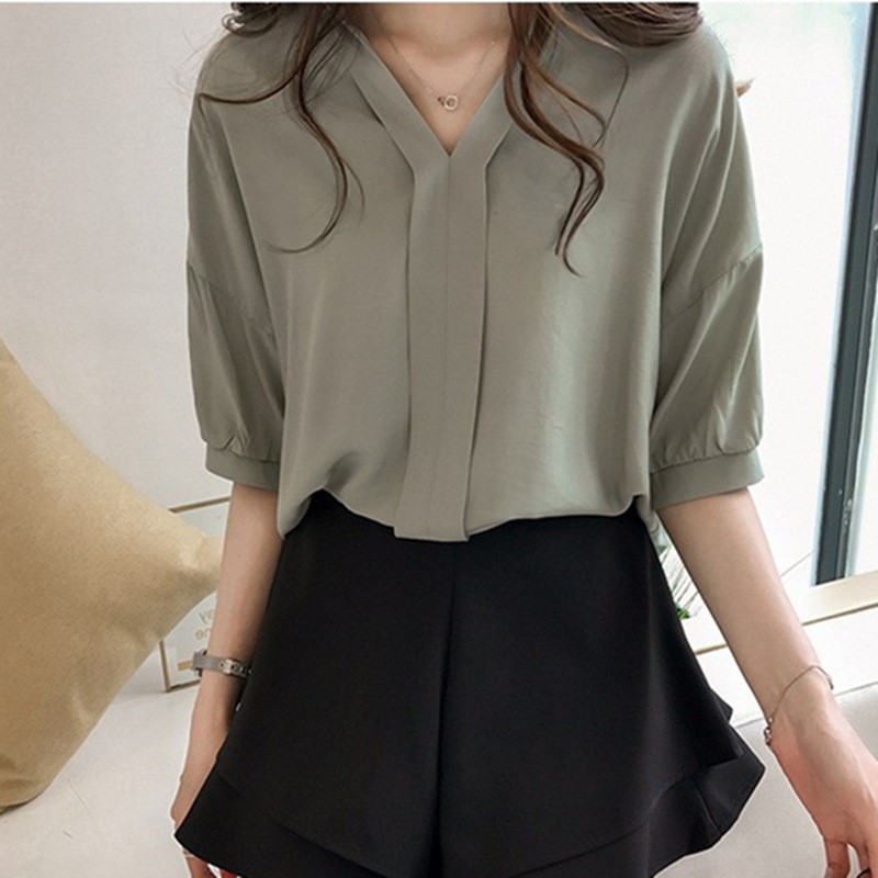 2023 여름 새로운 한국 스타일 루즈한 플러스 사이즈 셔츠 여성용 반팔 탑 모든 매치 솔리드 컬러 베이스 셔츠스토어 가기