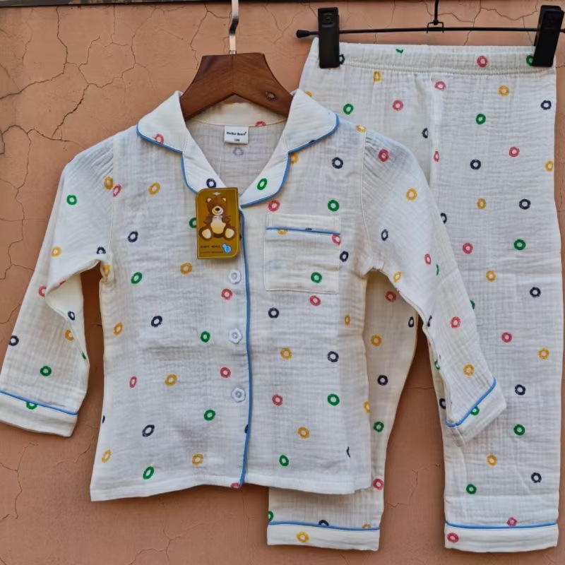 2026年韩版秋款ins儿童睡衣男童全棉秋女童纱布薄款家居服套装一件代发,100-140/1手5件,韩国春秋儿童睡衣居家服韩版女童睡衣男童棉质纱布家居服套装厂家直批,质量705d8e765d802f0d54b9ac7d724e75