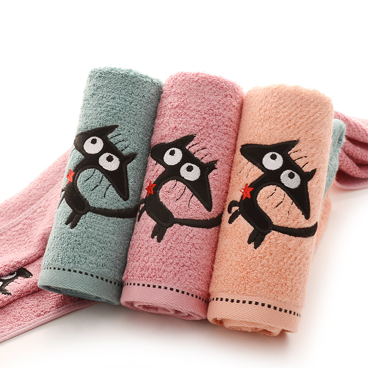 대나무 섬유 자수 고양이 어린이 목욕 타올 세트 카드 자수 고양이 대나무 숯 섬유 얼굴 수건 목욕 세트 타올스토어 가기